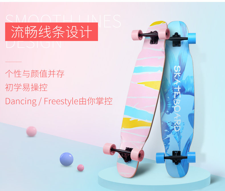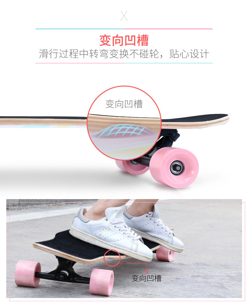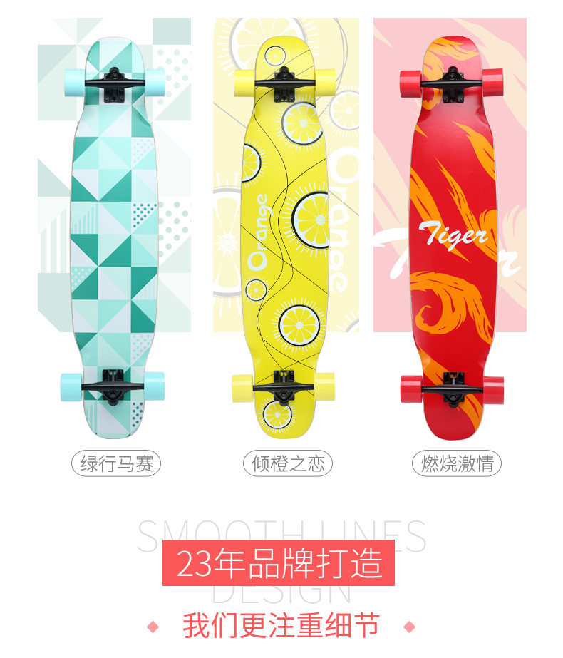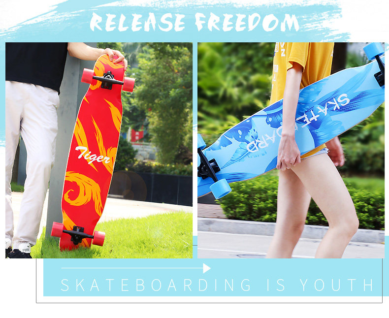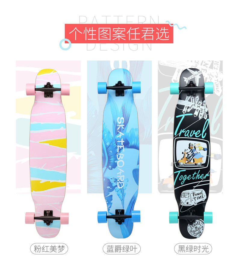 Скейтборд для взрослых, шоссейный лонгборд подходит для мужчин и женщин на четырех колесах для пожилых людей для начинающих, подходит для подростков