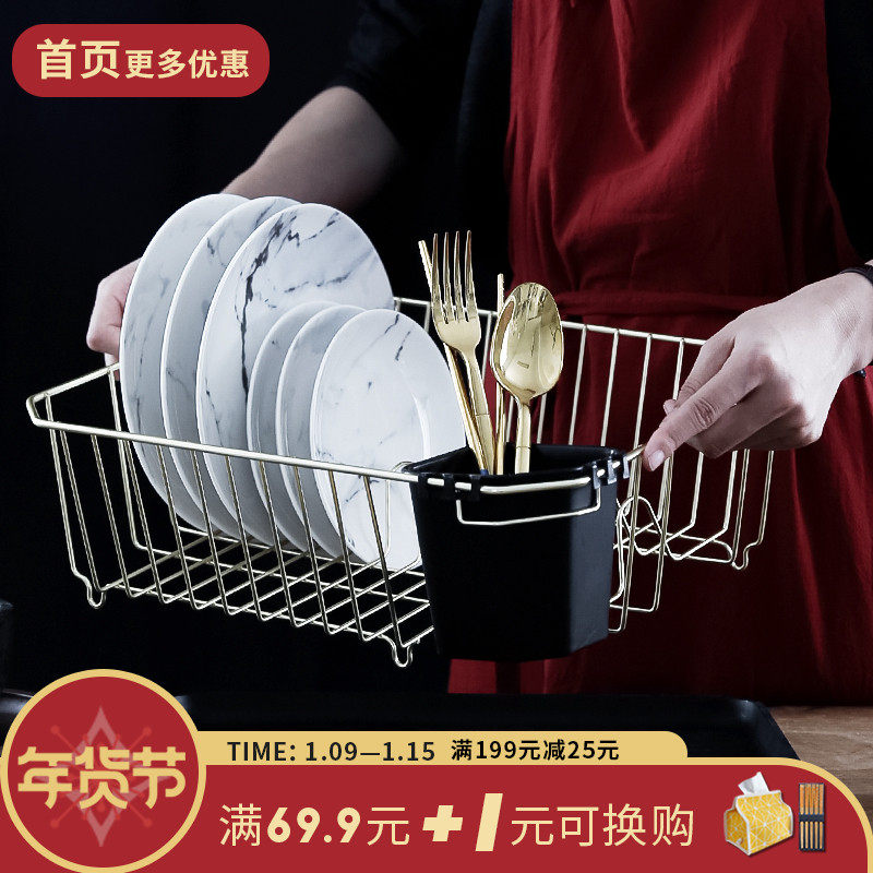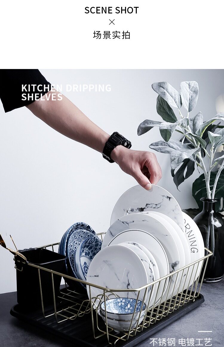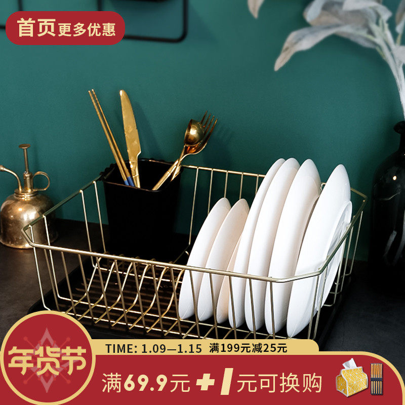 Нордический ветровой металлический на полке кухня кухня многослойная хранческая пластина, высушенная, мытья фильтр, посуда, палочки для еды, палочки для еды.