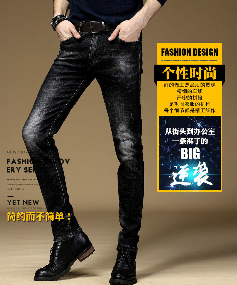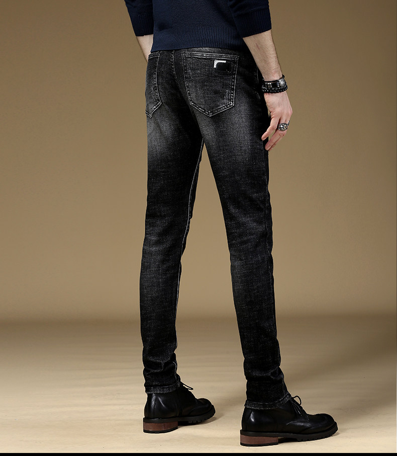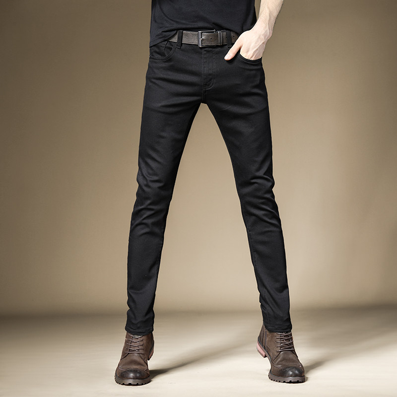 Демисезонные черные джинсы, эластичные трендовые штаны для отдыха, облегающий крой, в корейском стиле