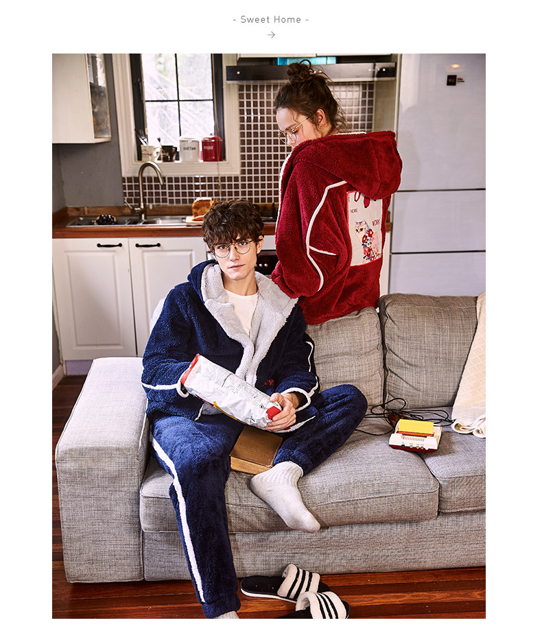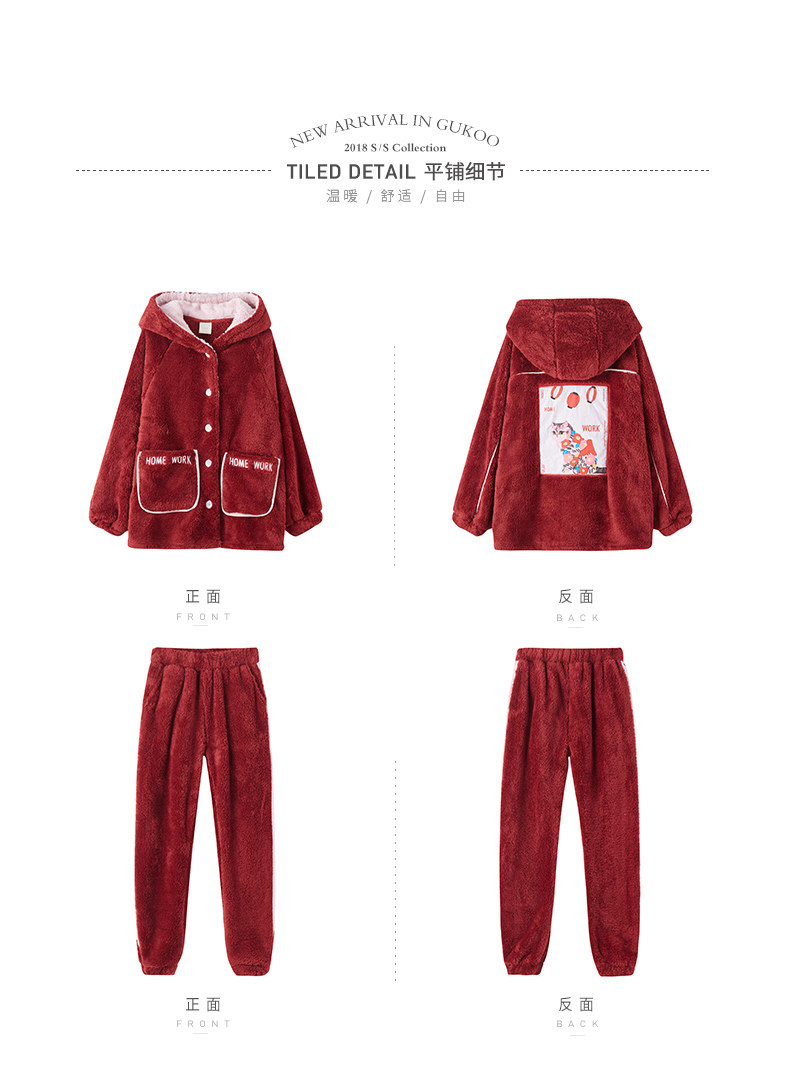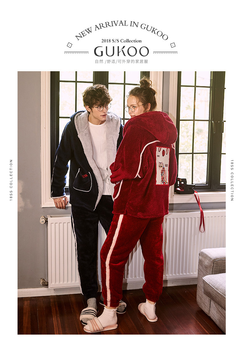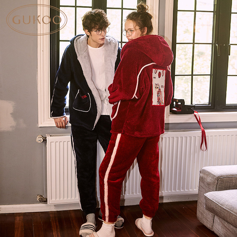 Gukoo/果壳 Зимняя мультяшная коралловая бархатная демисезонная пижама для влюбленных