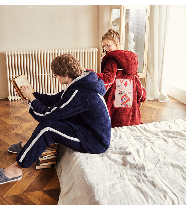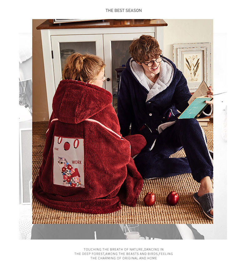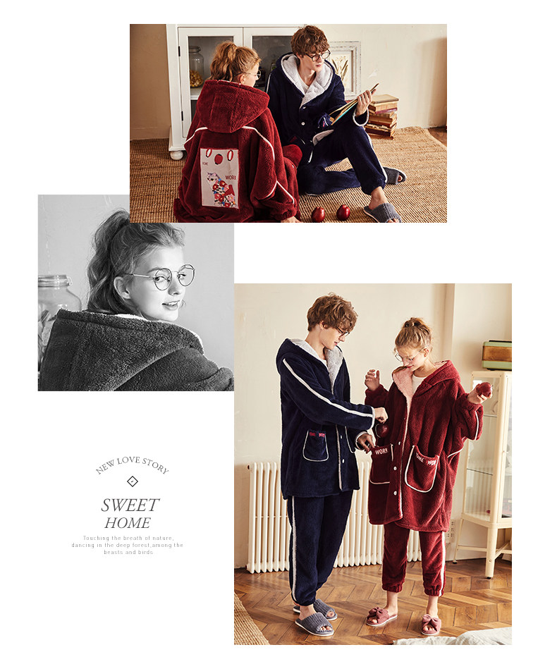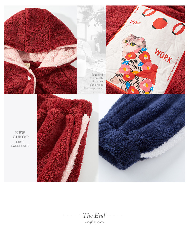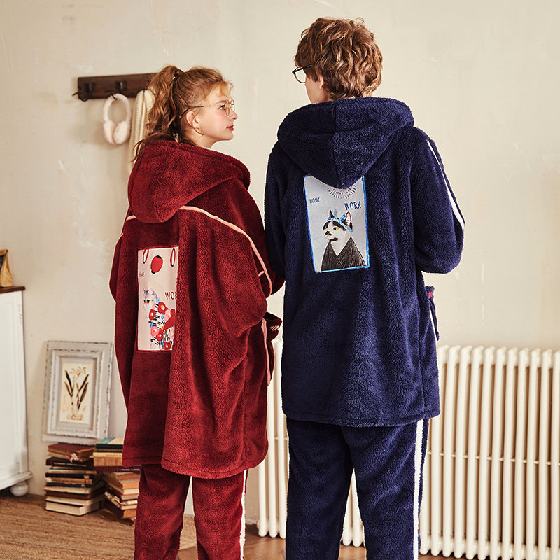 Gukoo/果壳 Зимняя мультяшная коралловая бархатная демисезонная пижама для влюбленных