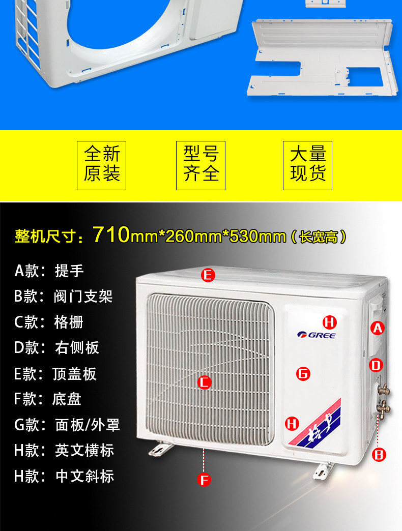 Подходит для кондиционера Gree, наружный блок 1P1.5P, наружный блок, верхняя панель корпуса, верхняя крышка, основание шасси, длина решетки 710