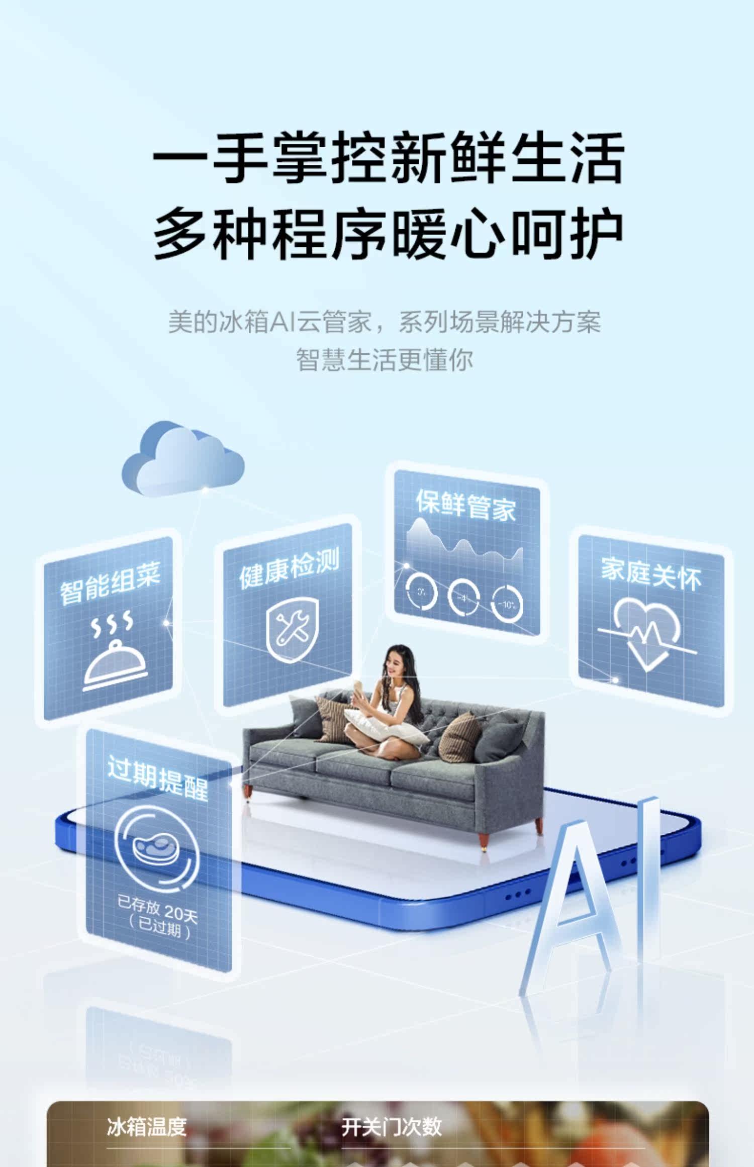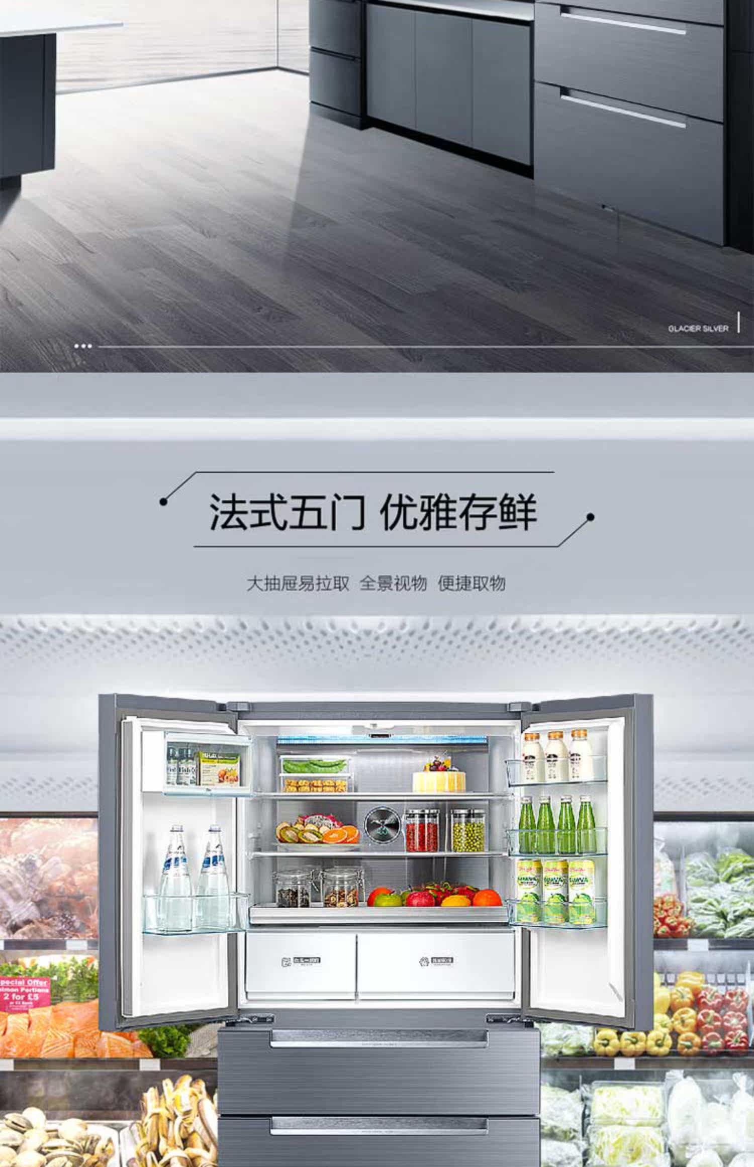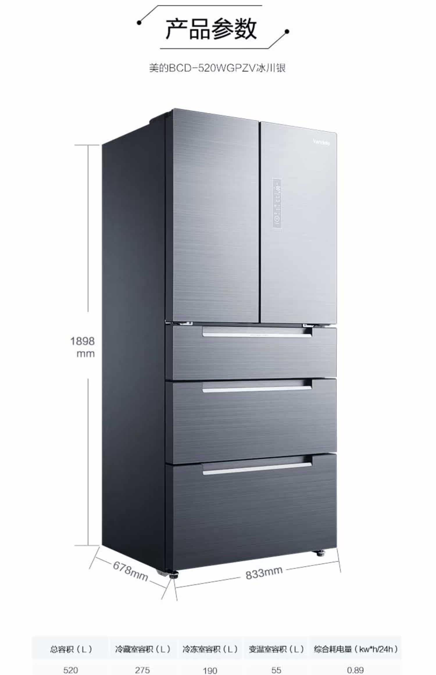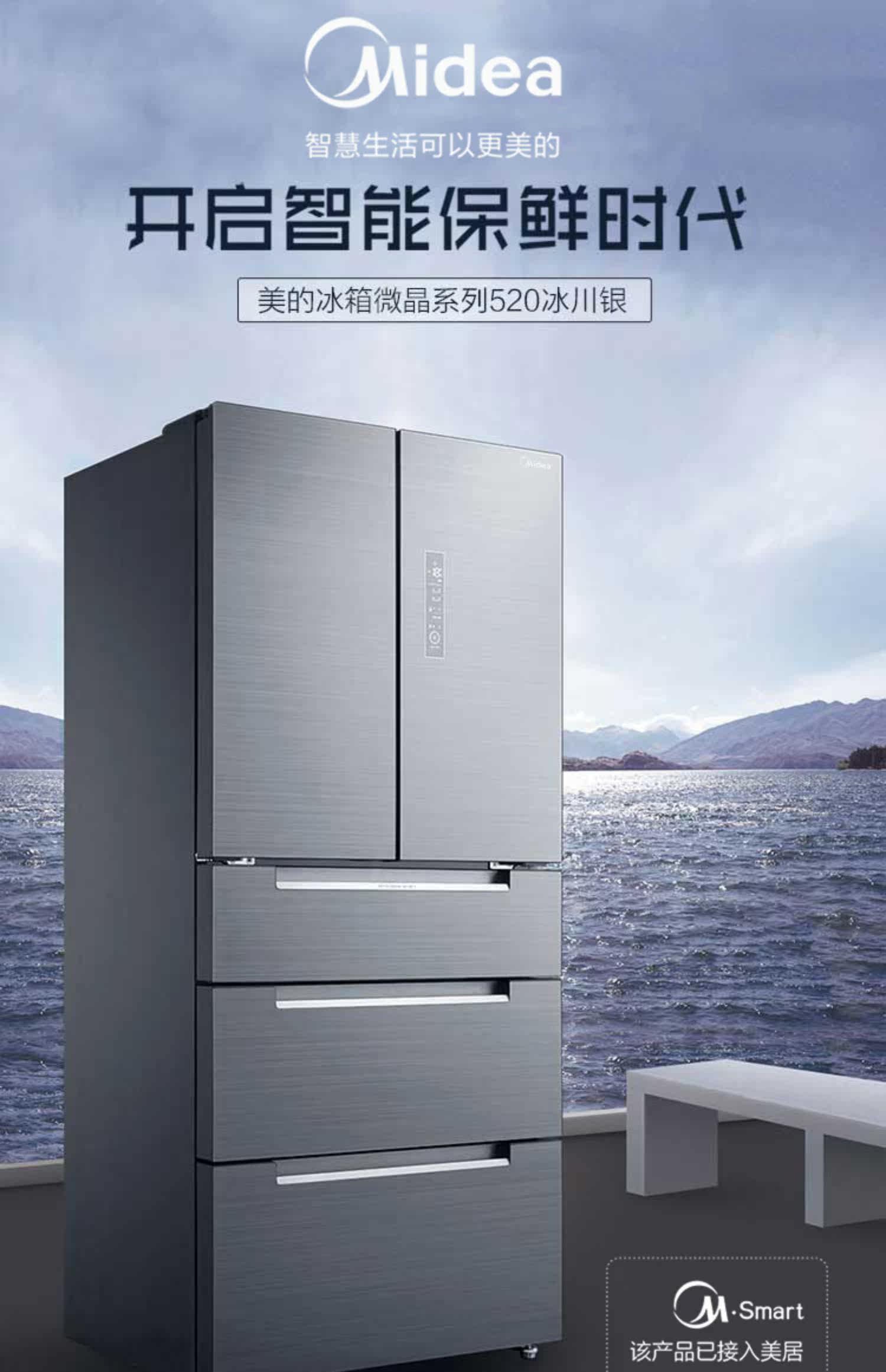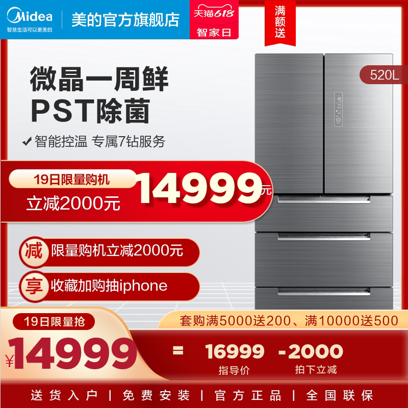 [Micro Crystal One Week Fresh] Midea 520L частотная частота частота открытая дверь пять дверей, пять дверей для открытия холодильников Home Smart Home Холодинки холодильники