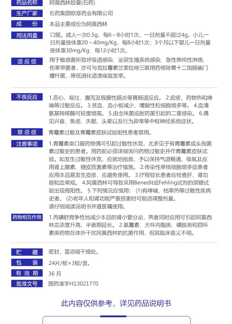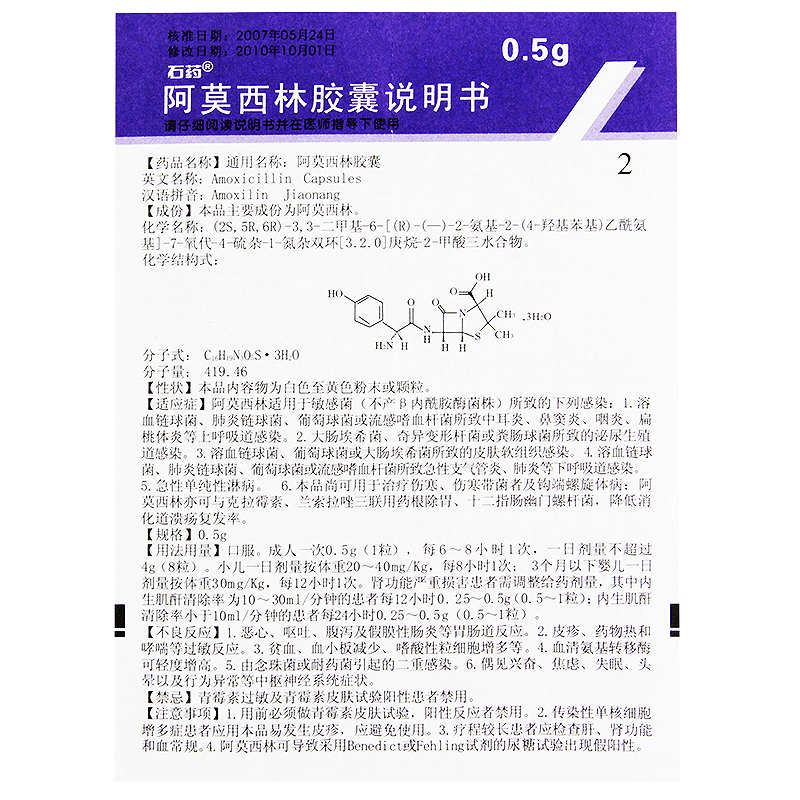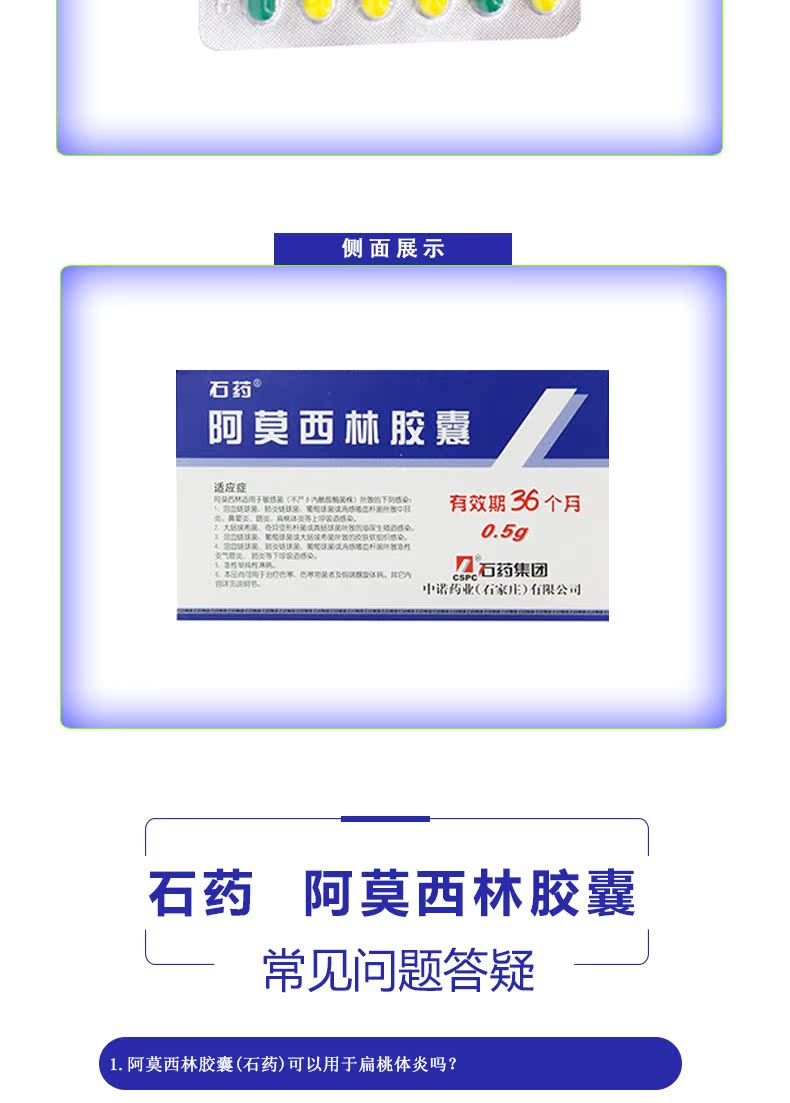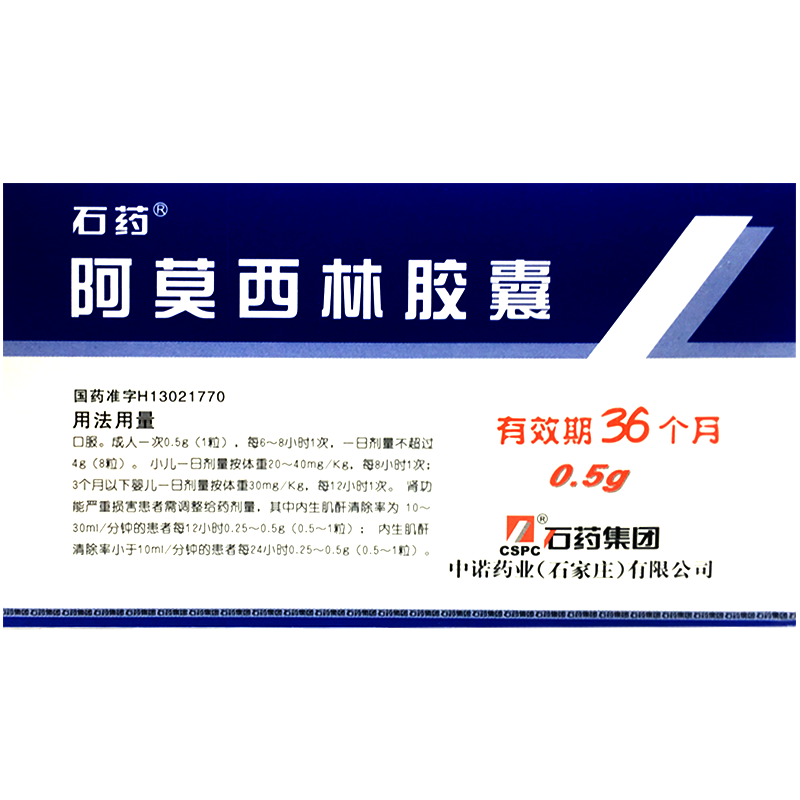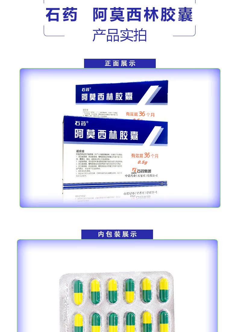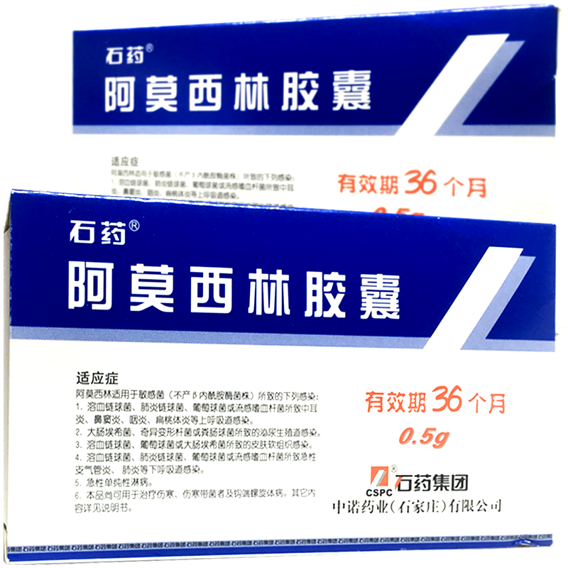 石药 Капсула амоксицина 0,5 г*36 Капсулы/ящик синусит Фарингит Фарингит Урогеногенный тракт инфекция гонорея острый бронхит