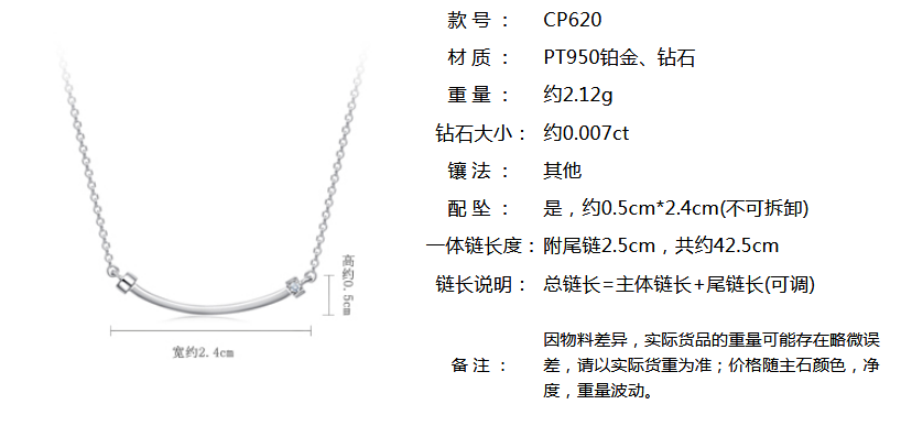 周大福 Модное ювелирное украшение, платиновая бриллиантовая подвеска, простой и элегантный дизайн, платина 950 пробы