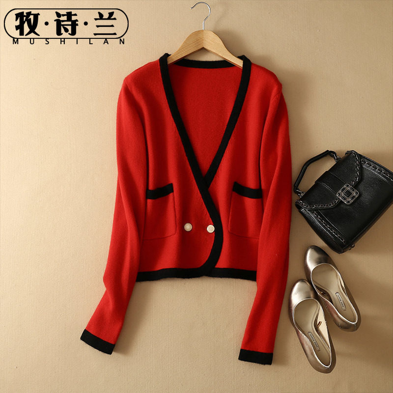 Демисезонный короткий кашемировый кардиган, рубашка, трикотажный свитер, куртка, 2020, V-образный вырез
