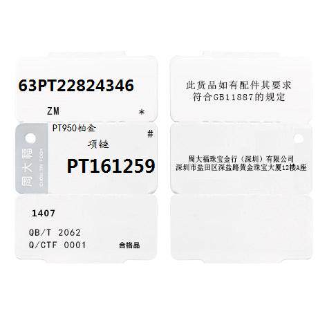 周大福 Платиновое ожерелье, подвеска, платина 950 пробы, платина 161259 пробы, подарок на день рождения