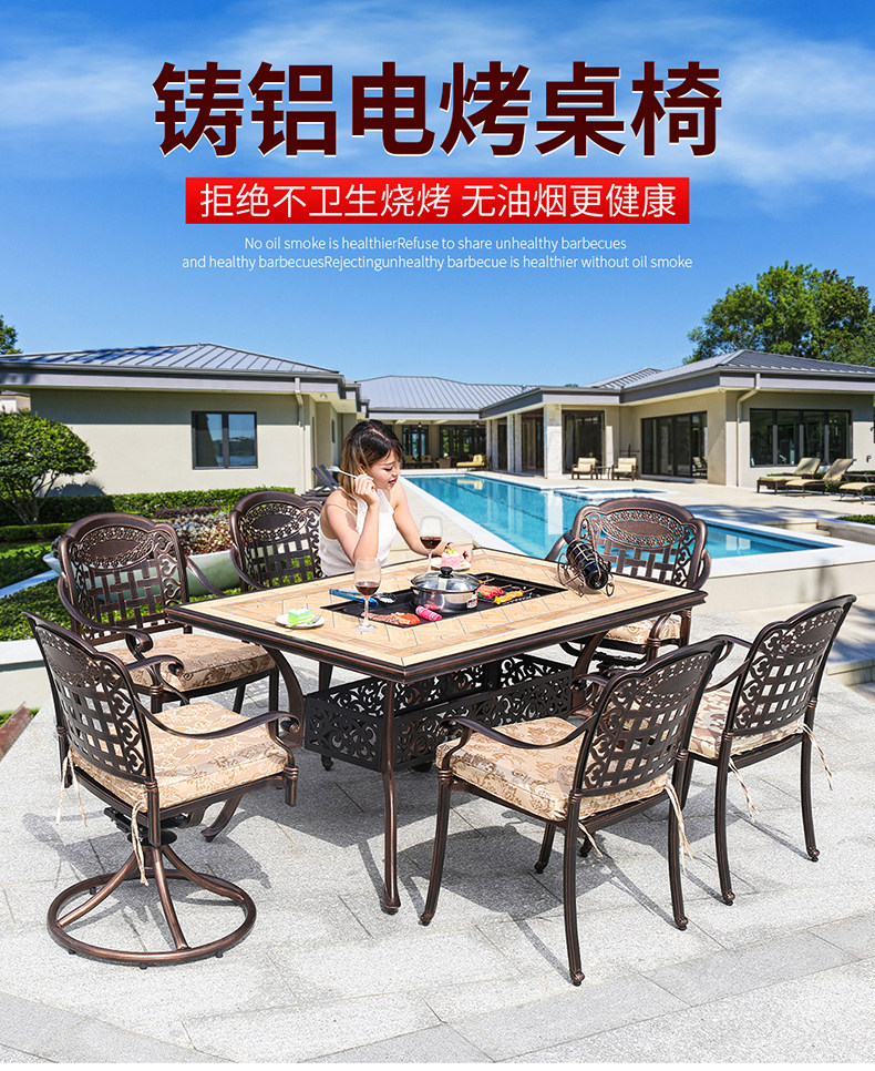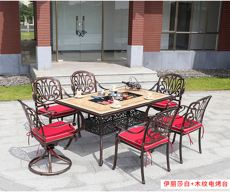 Стол для барбекю и стул на открытом воздухе двор европейского в стиле домашнего жилья.