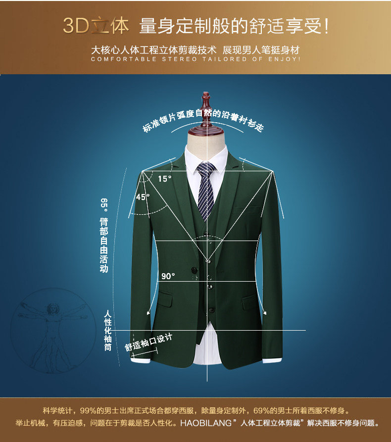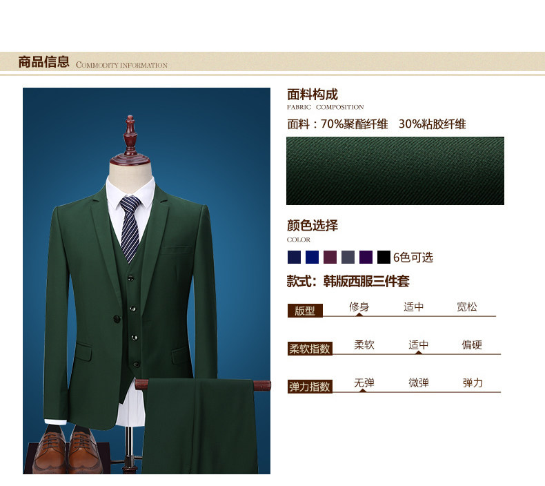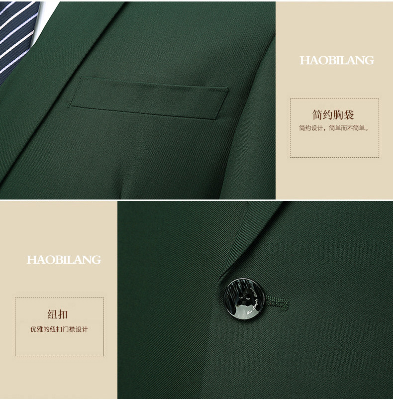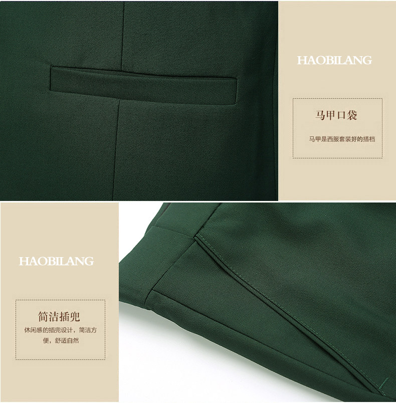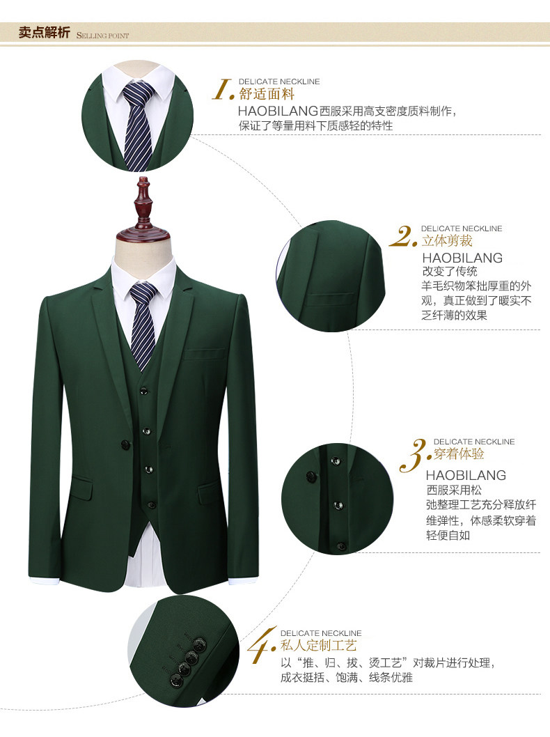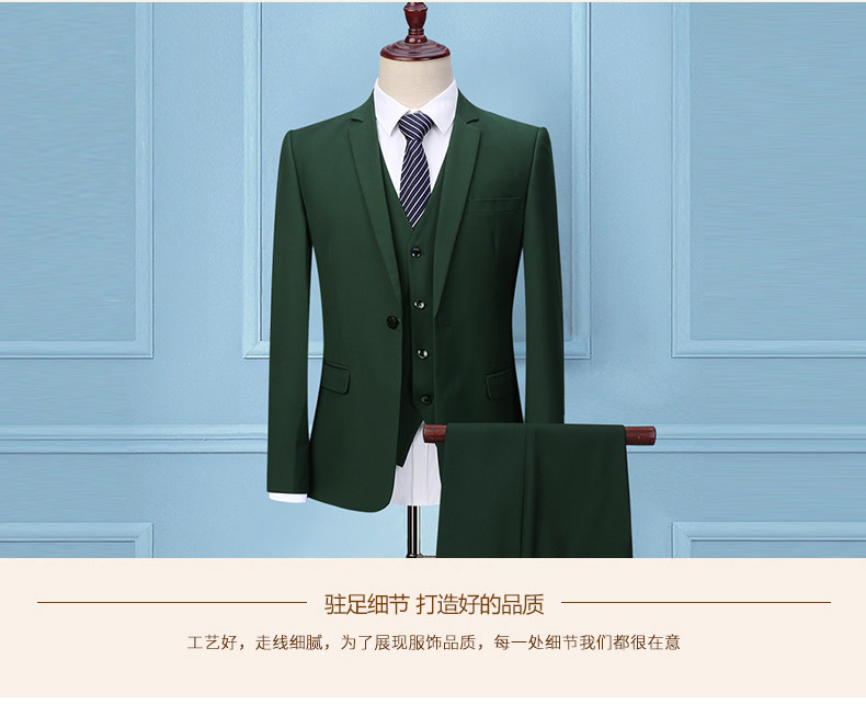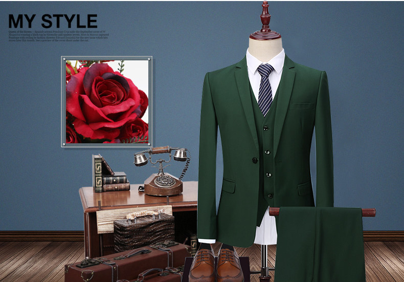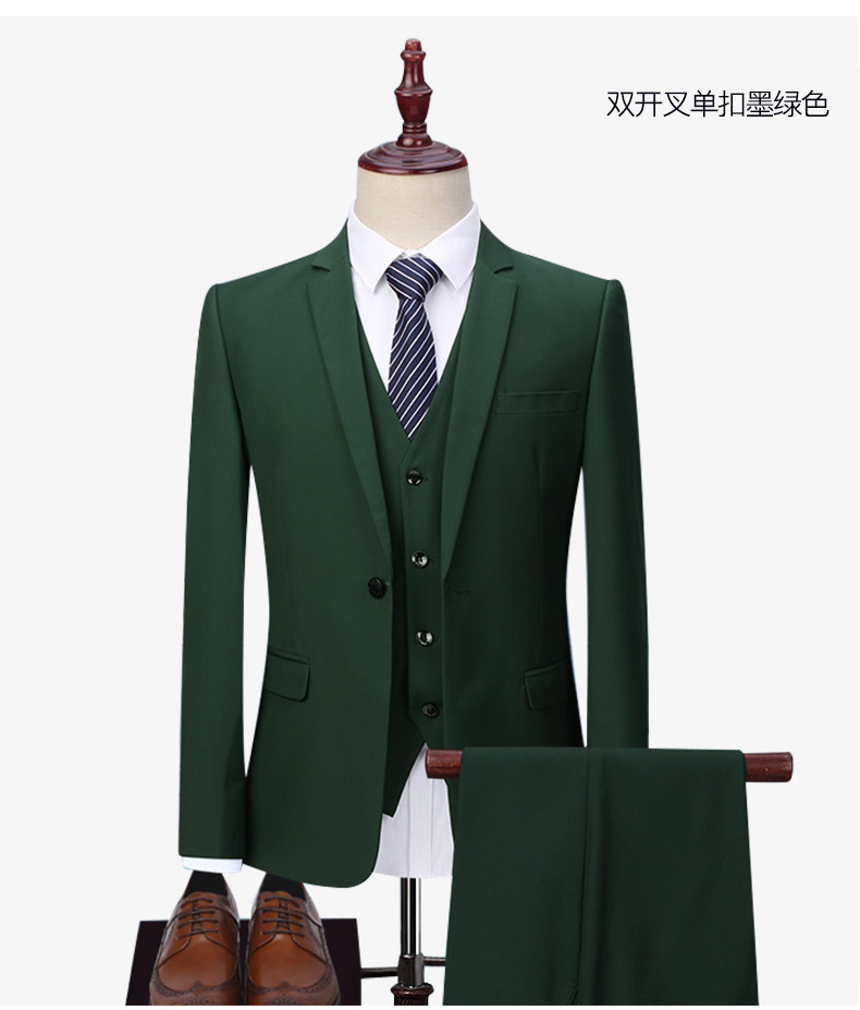 Мужской комплект, пиджак классического кроя, зеленое платье, 3 предмета, в корейском стиле