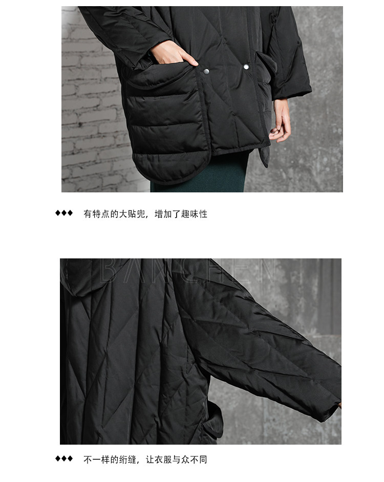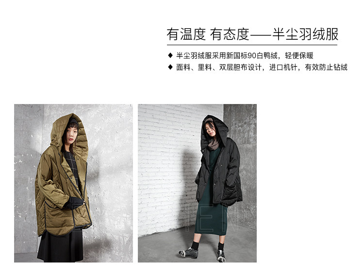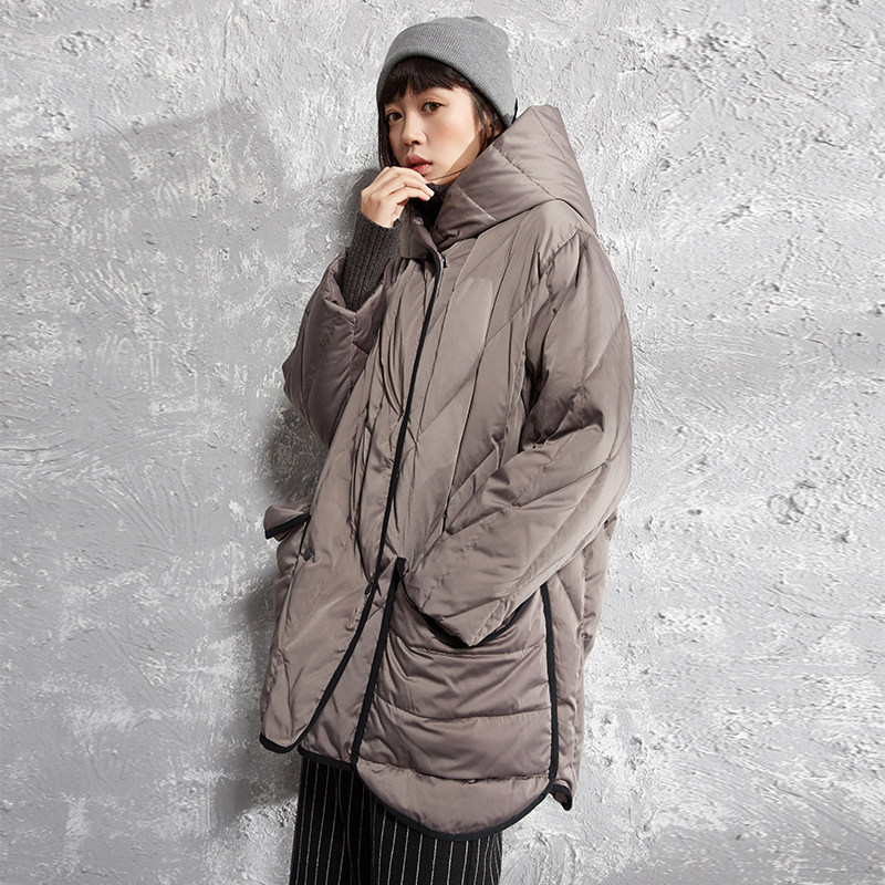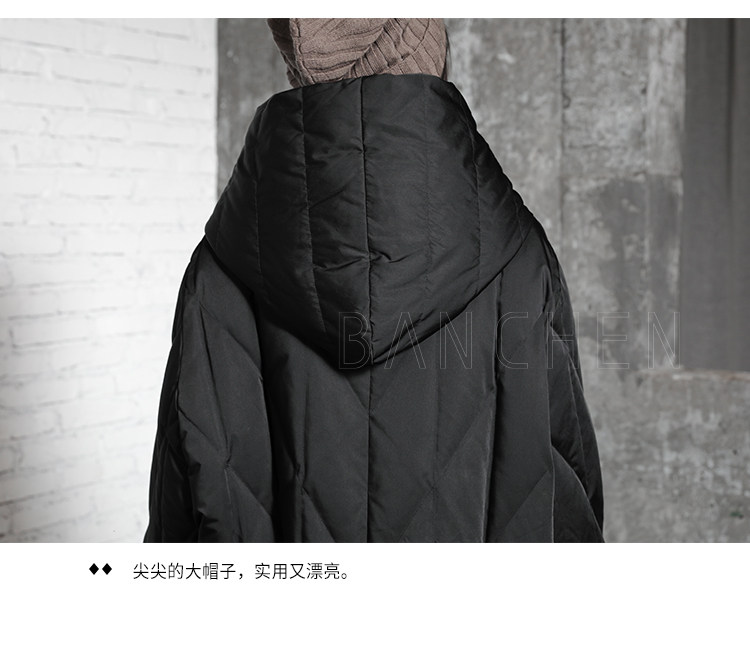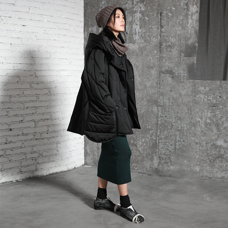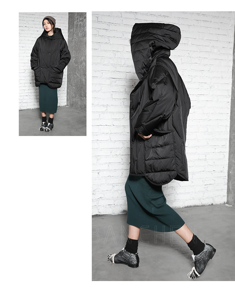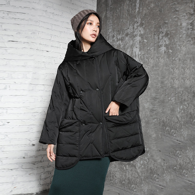 半尘 Оригинальный дизайнерский бархатный пуховик с капюшоном, утиный пух, увеличенная толщина, свободный крой, средней длины