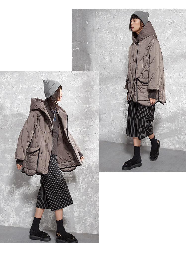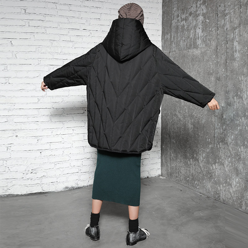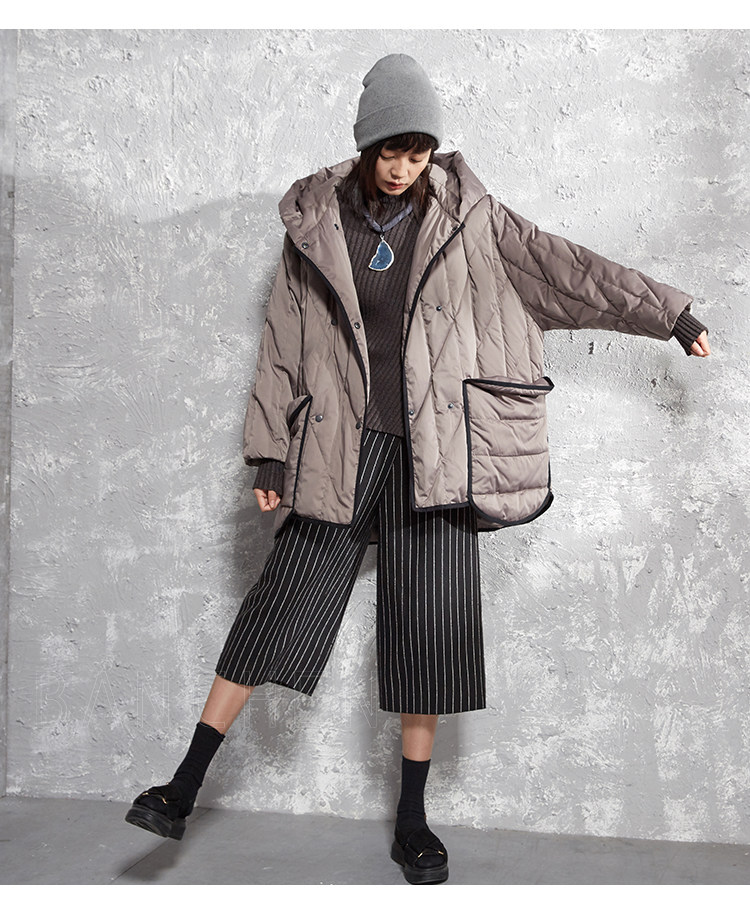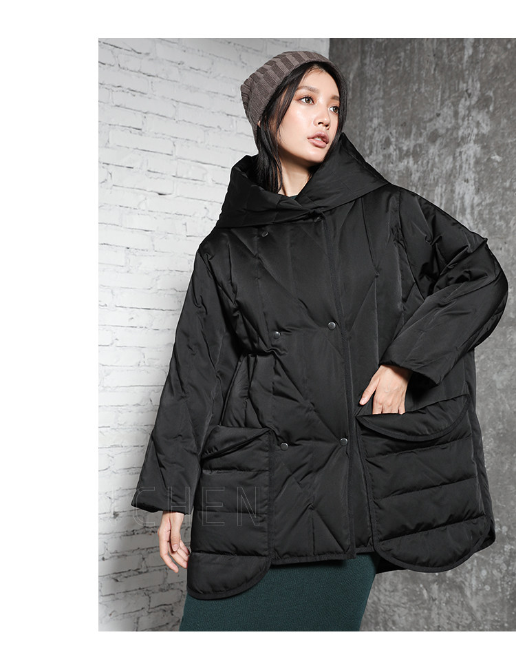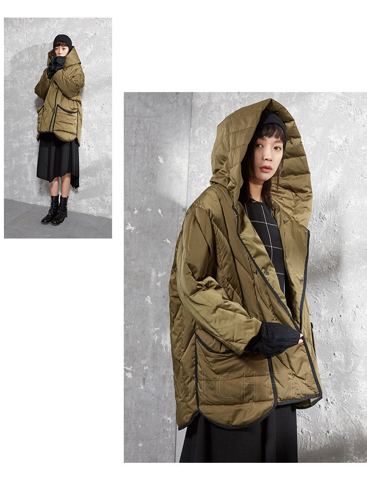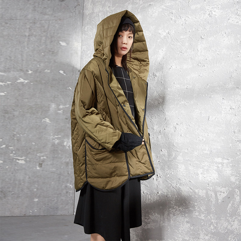 半尘 Оригинальный дизайнерский бархатный пуховик с капюшоном, утиный пух, увеличенная толщина, свободный крой, средней длины