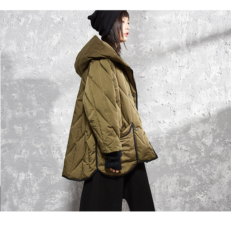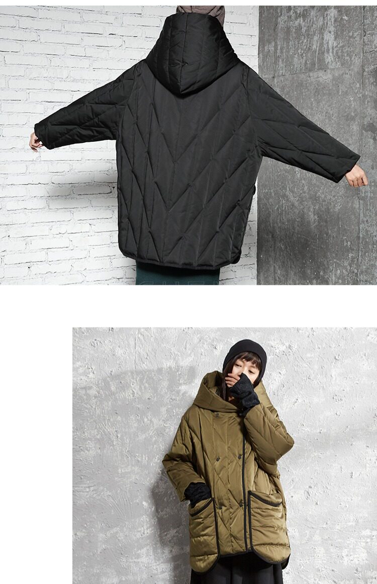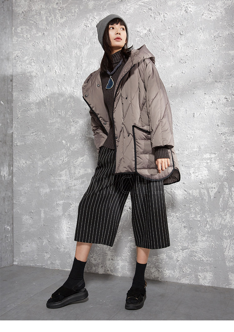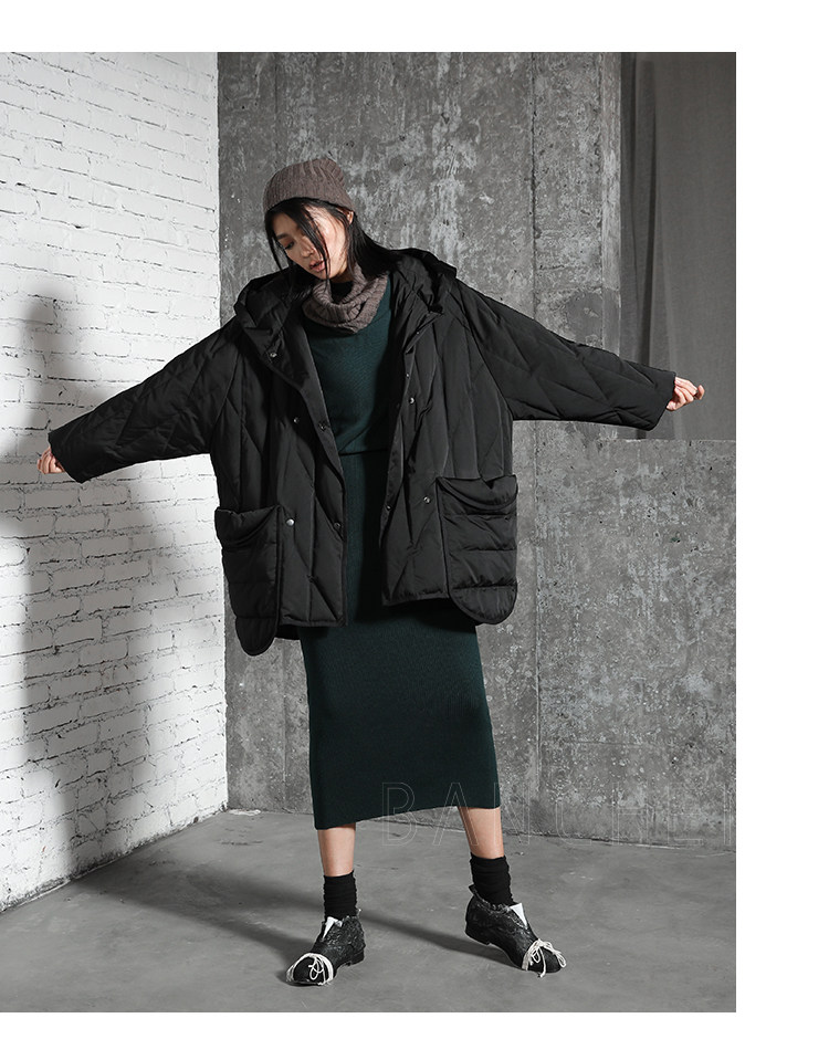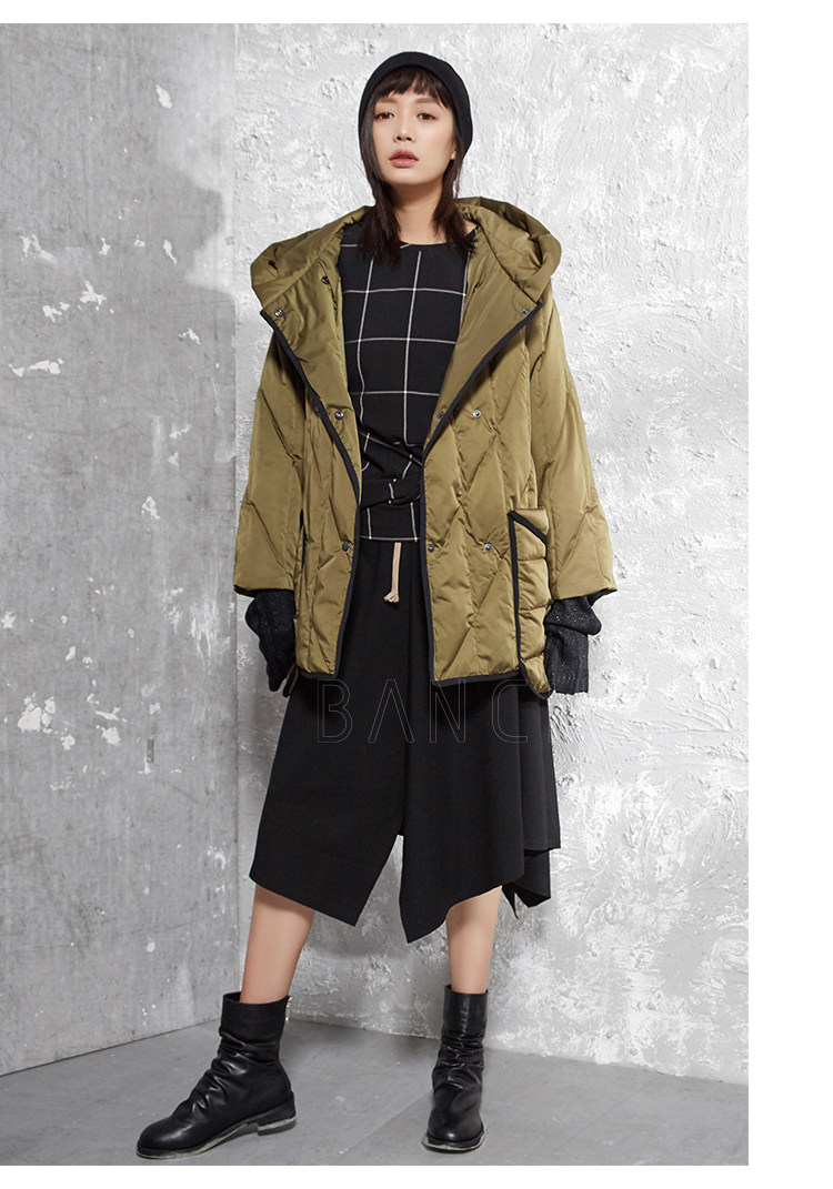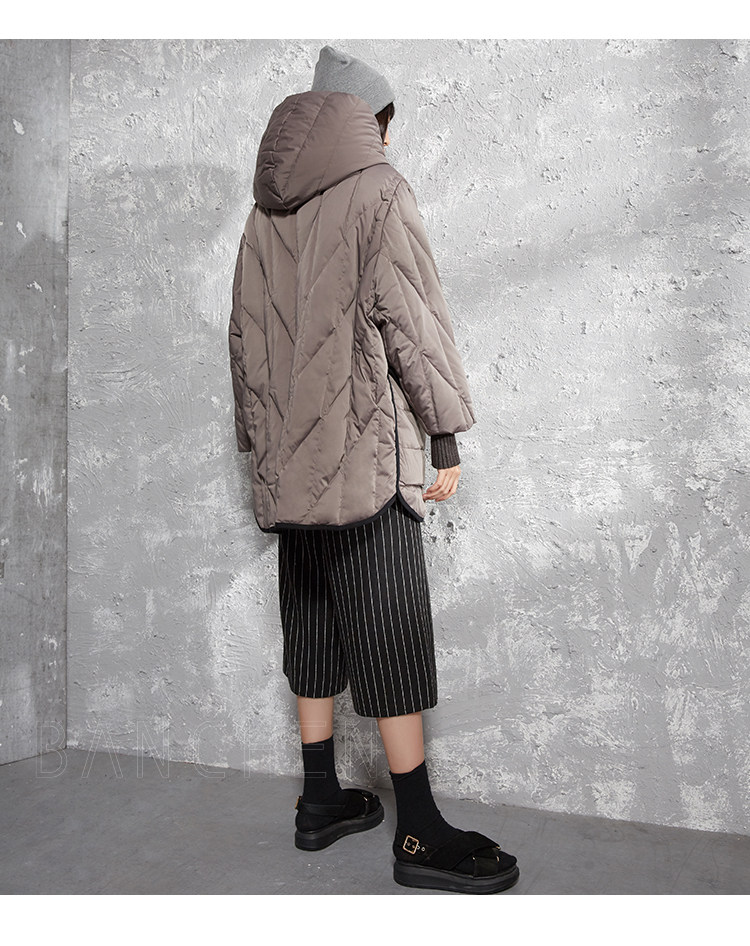 半尘 Оригинальный дизайнерский бархатный пуховик с капюшоном, утиный пух, увеличенная толщина, свободный крой, средней длины