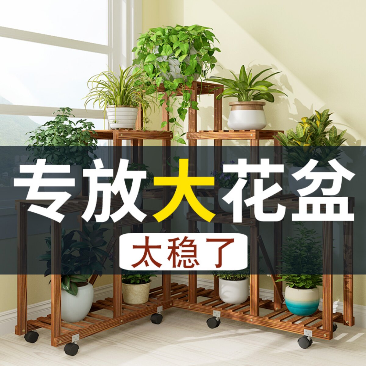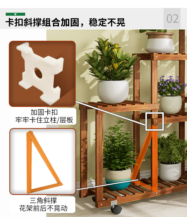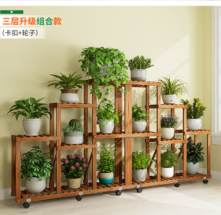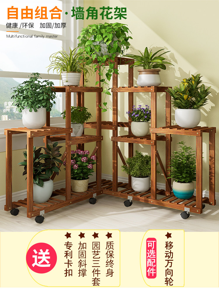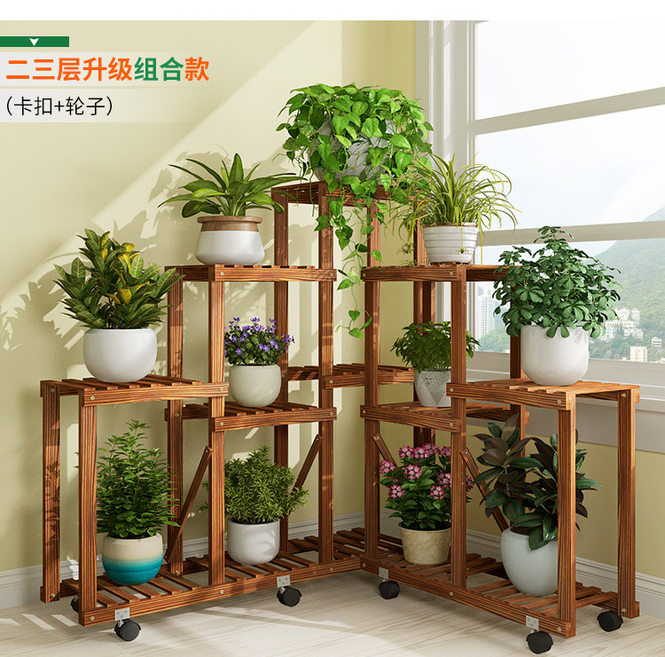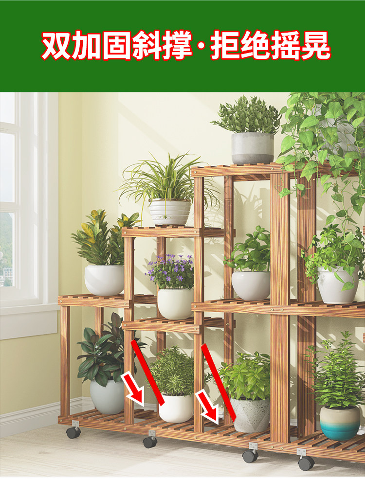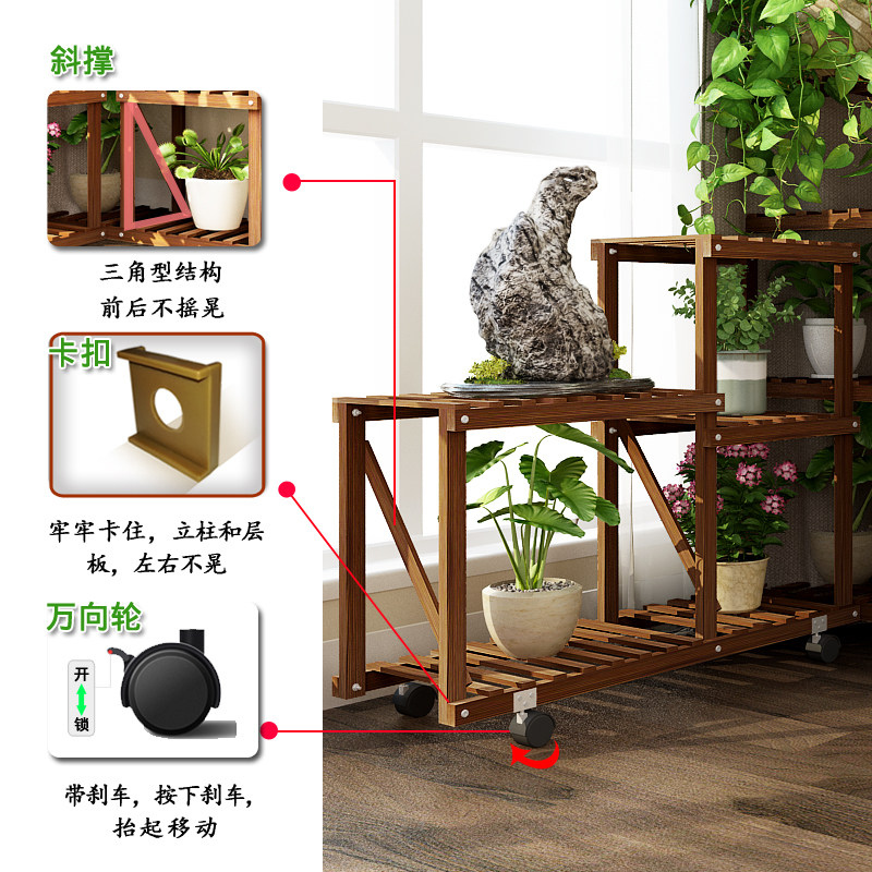 Большой цветочный бассейн гостиная цветочная стойка движущаяся колесо многослойное внутреннее домашнее дерево с твердым деревом балконы на балконе простая полка