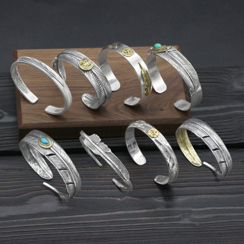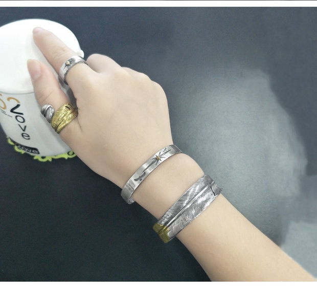 Ретро браслет ручной работы подходит для мужчин и женщин, серебро 925 пробы, простой и элегантный дизайн