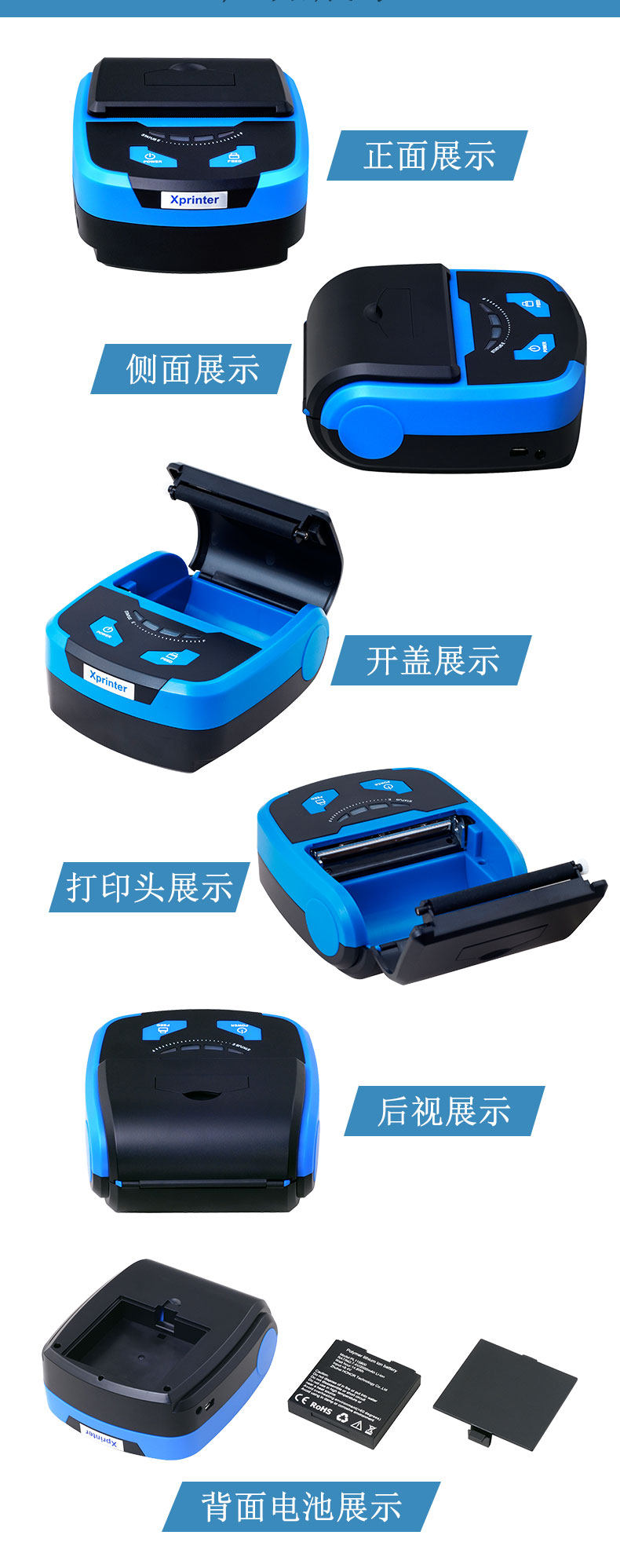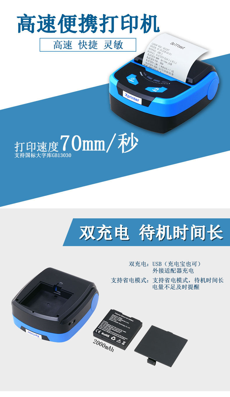 Портативный принтер, bluetooth, 80мм