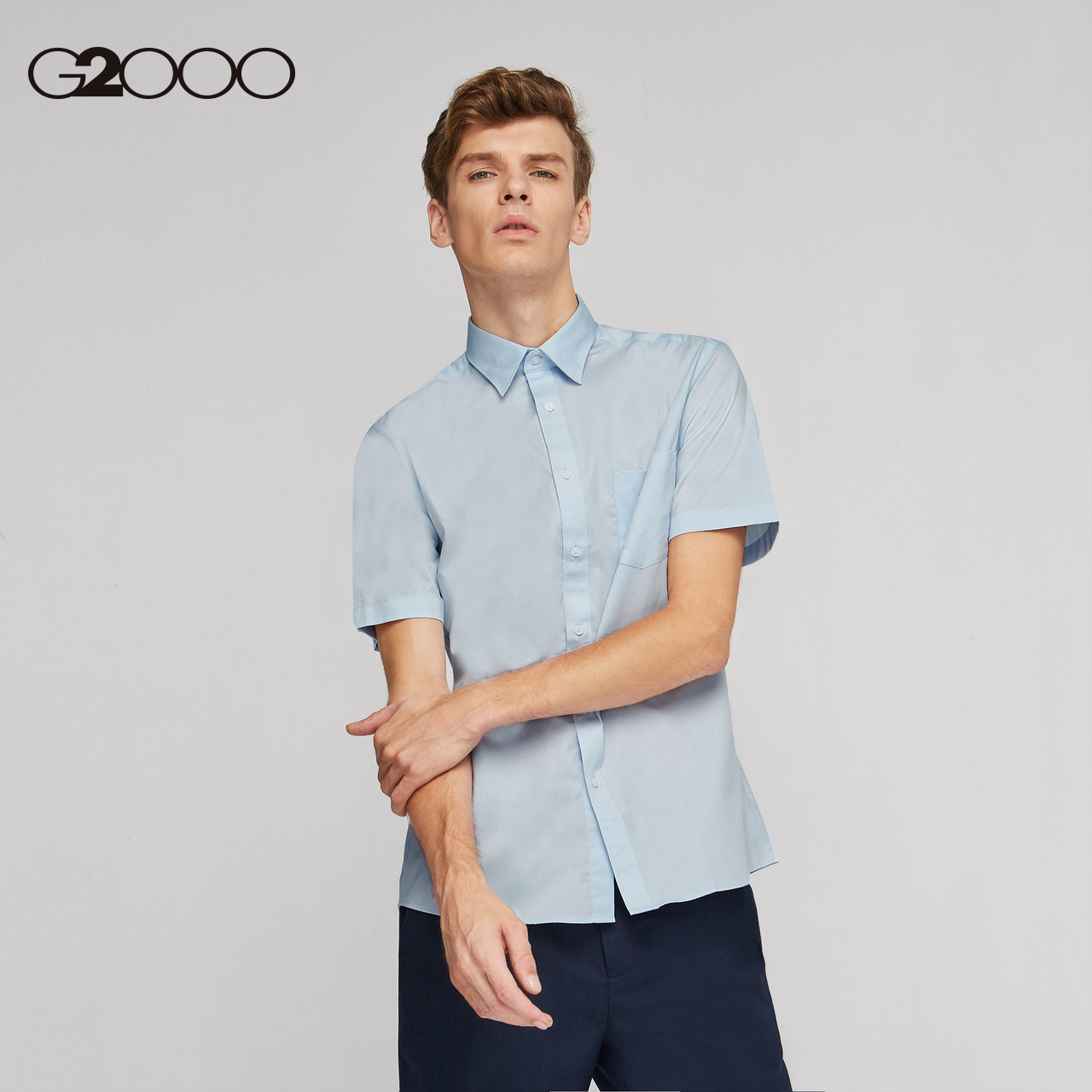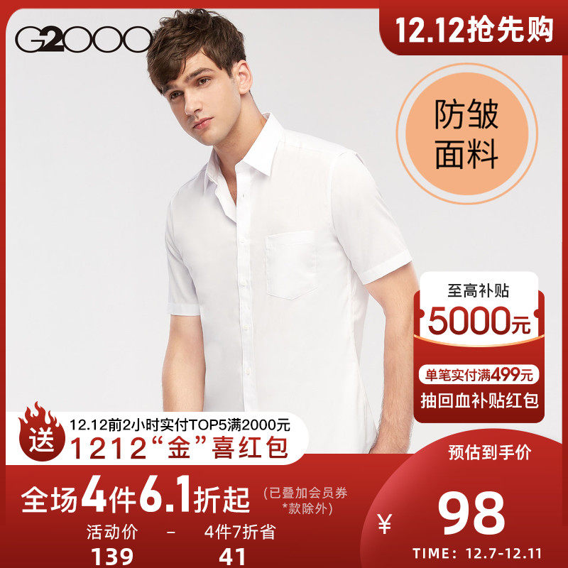 G2000 Мужская ткань CVC Anti -wrinke Short -Sleeded Рубашка Новые сладкие хлопковые рубашки*