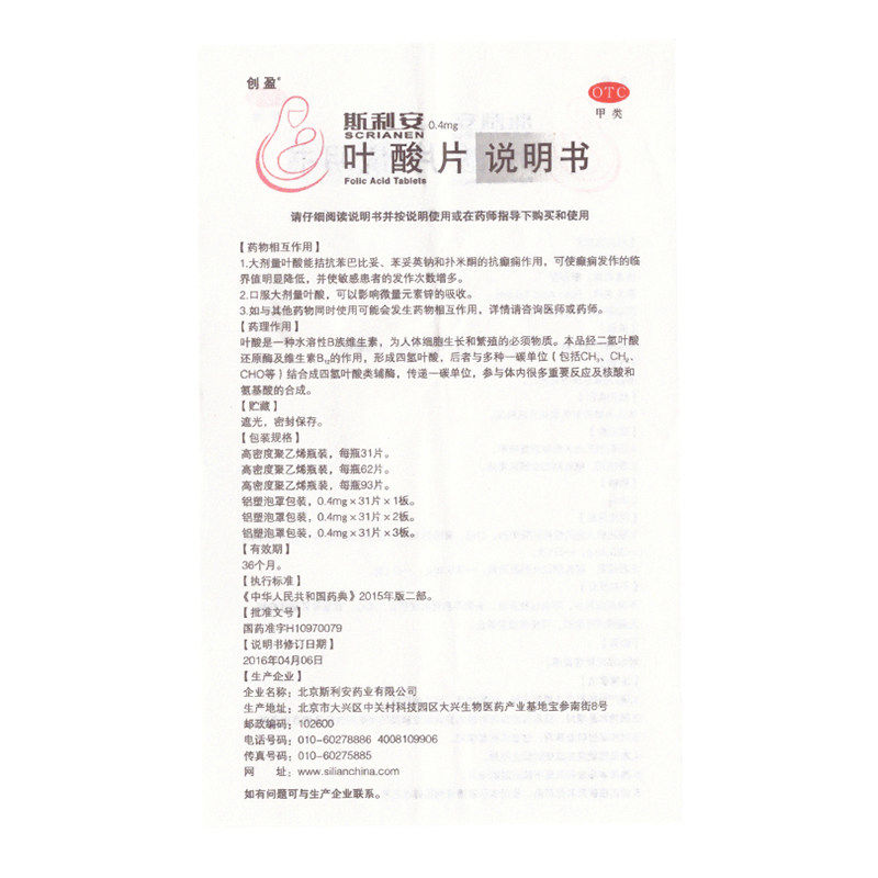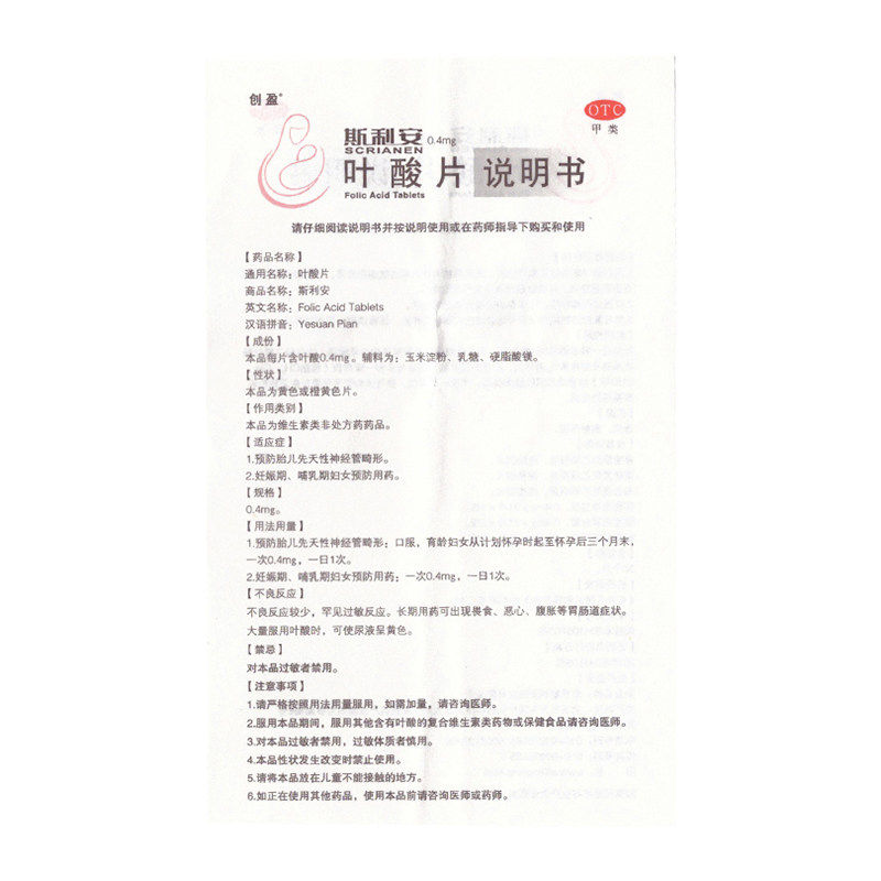 创盈 Слиан фолиевая кислота таблетки 31 таблетки для предотвращения врожденной деформации нервной трубки плода, беременности, периода грудного вскармливания