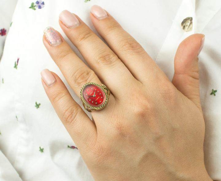 Элегантный маленький красный циферблат, механическое кольцо, часы