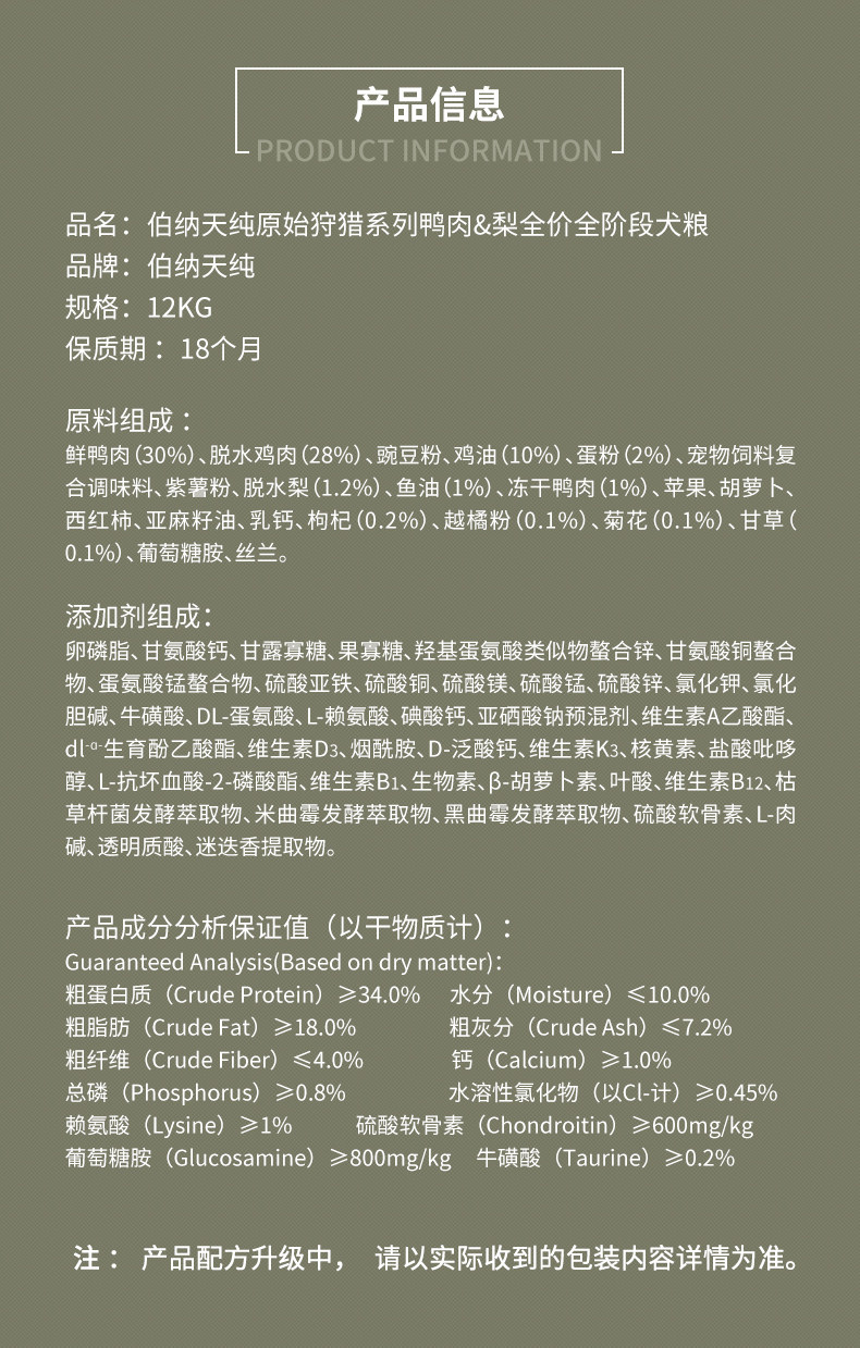Bernardian Pure Bona Tian Pure Dog Grain Duck Gear Pear 12 кг чистый огонь улучшить слезы слезы великие собачьи щенки