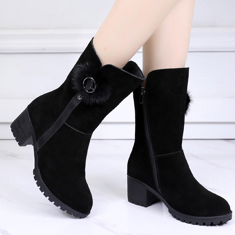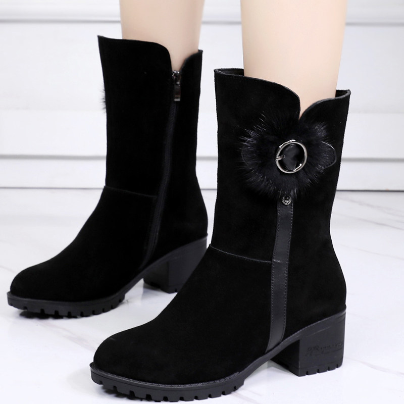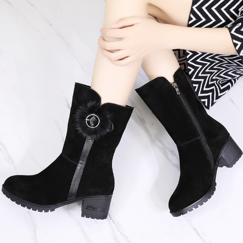 Ботинки, утепленные зимние высокие сапоги, средней длины, из натуральной кожи, большой размер, мягкая подошва