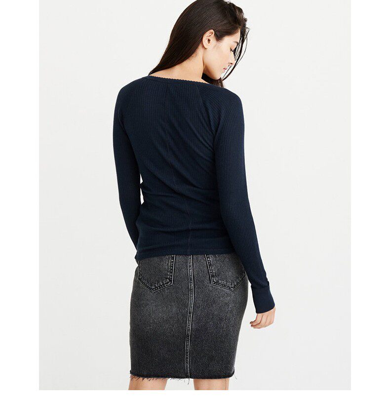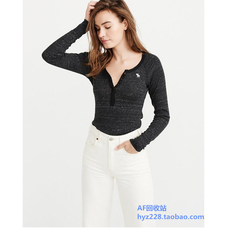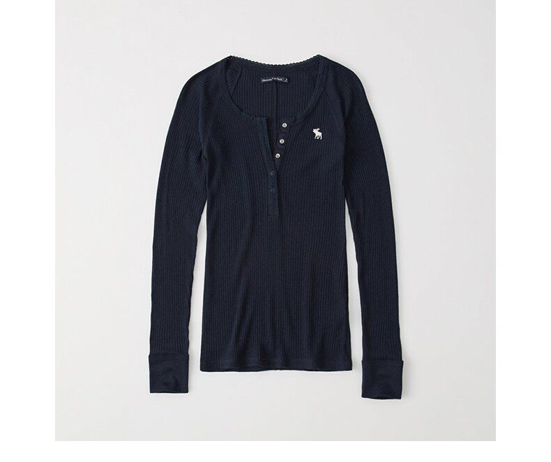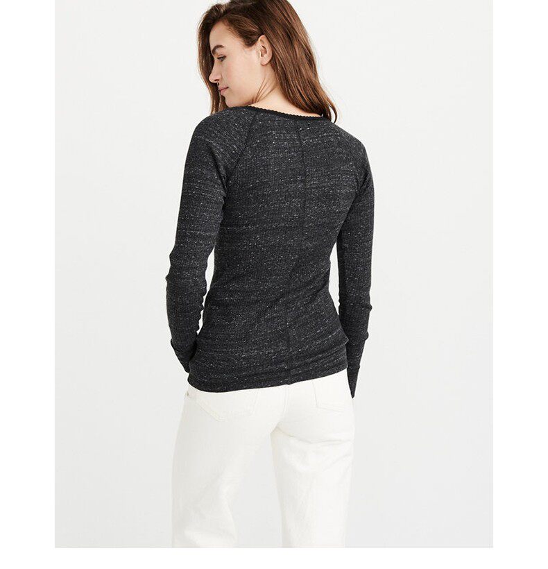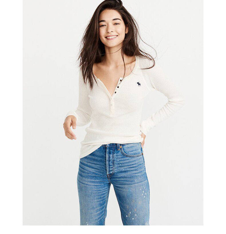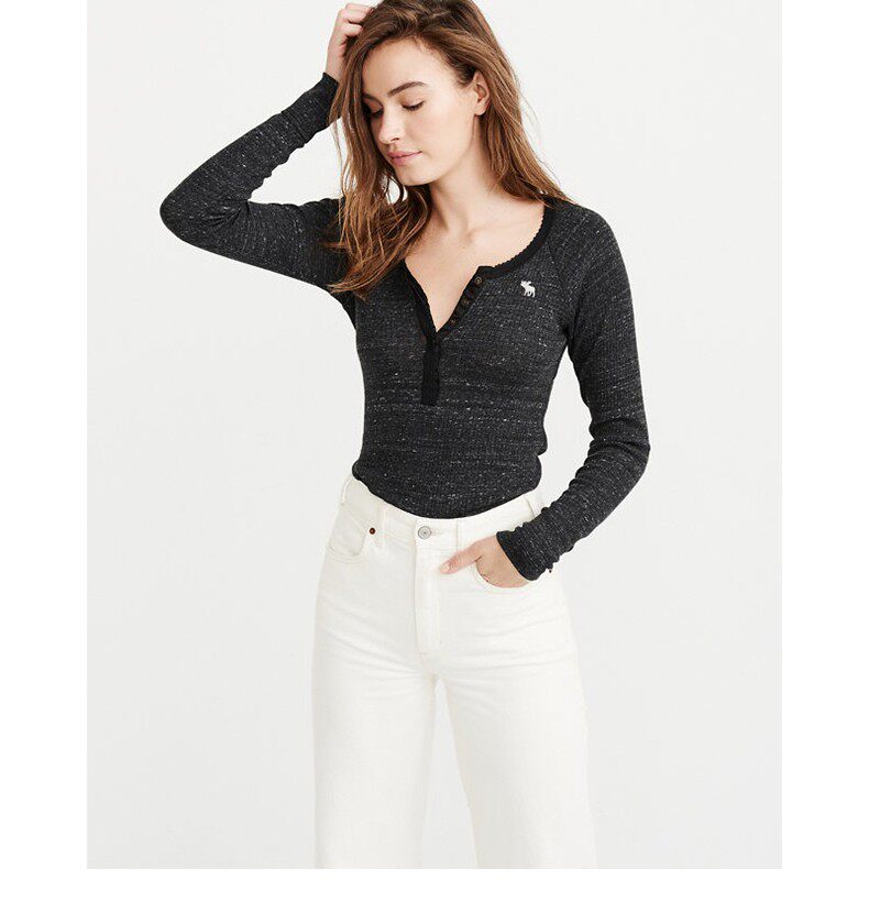 Американская осенне-зимняя женская футболка с длинными рукавами в рубчик в стиле Генри с оленями American Abercrombie Fitch 18 AF 215848