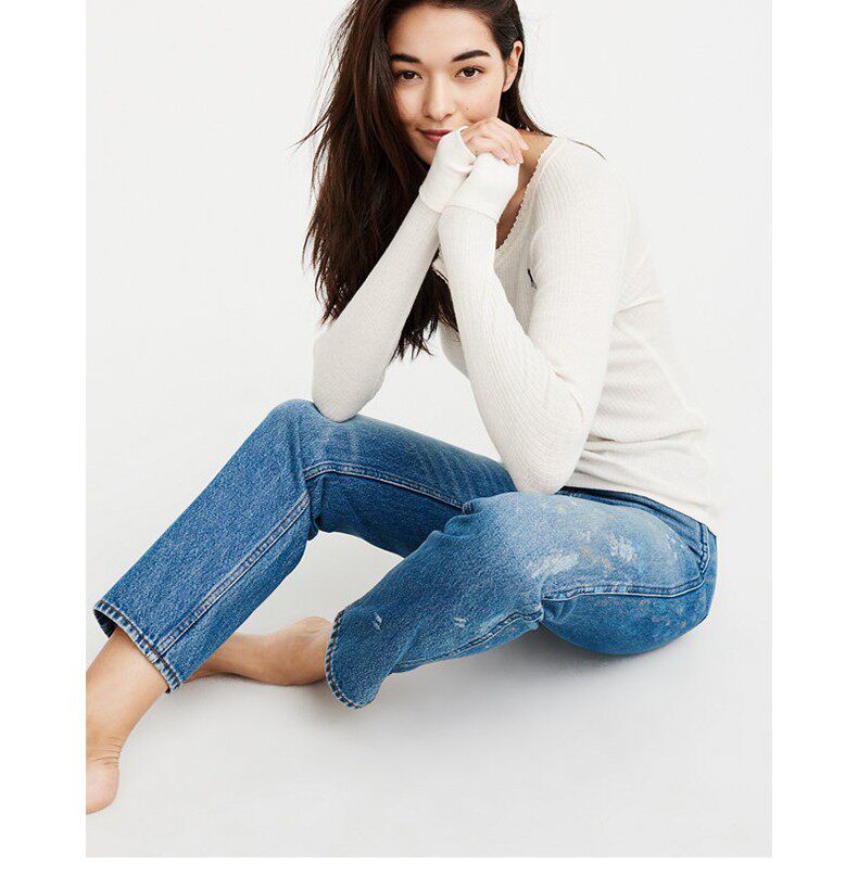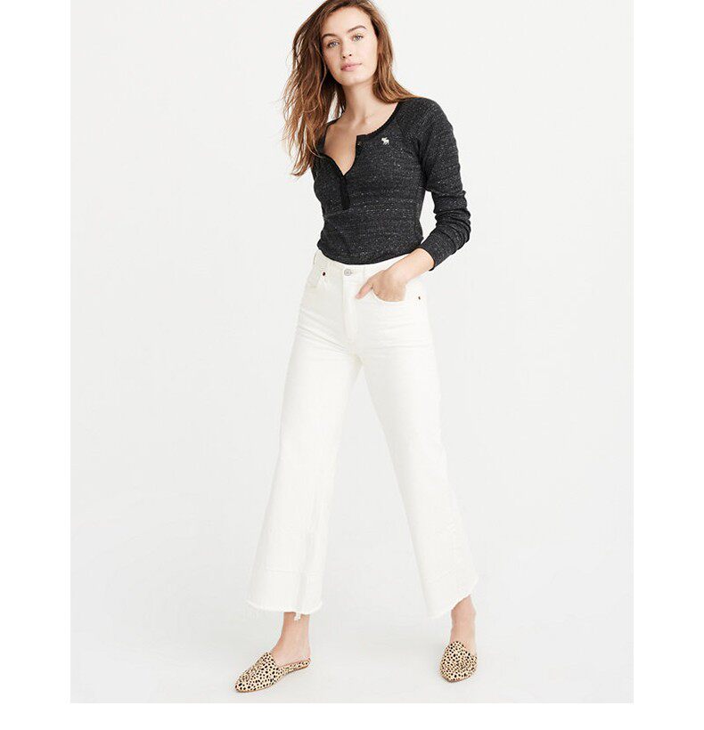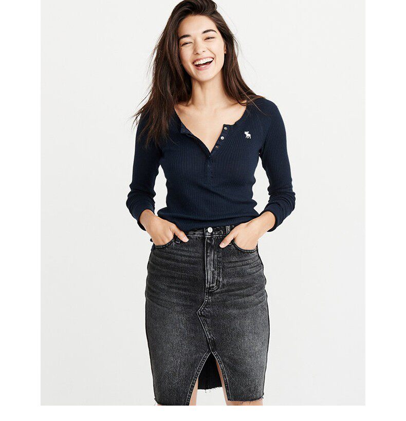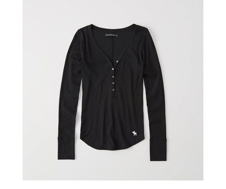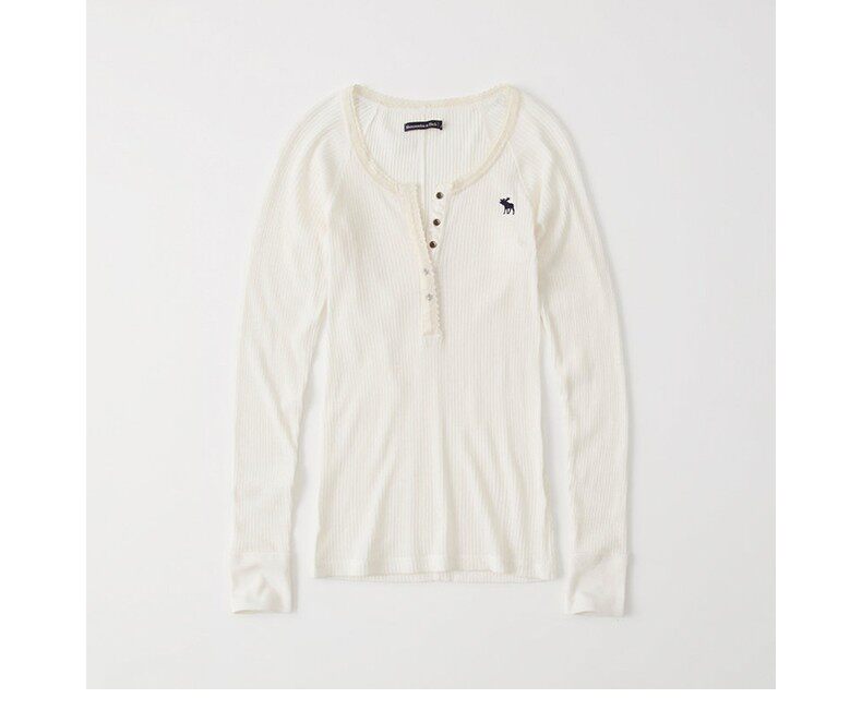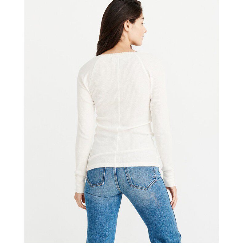 Американская осенне-зимняя женская футболка с длинными рукавами в рубчик в стиле Генри с оленями American Abercrombie Fitch 18 AF 215848
