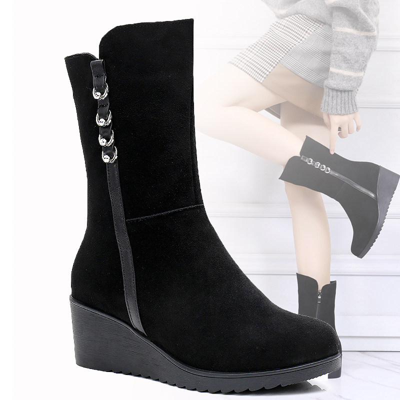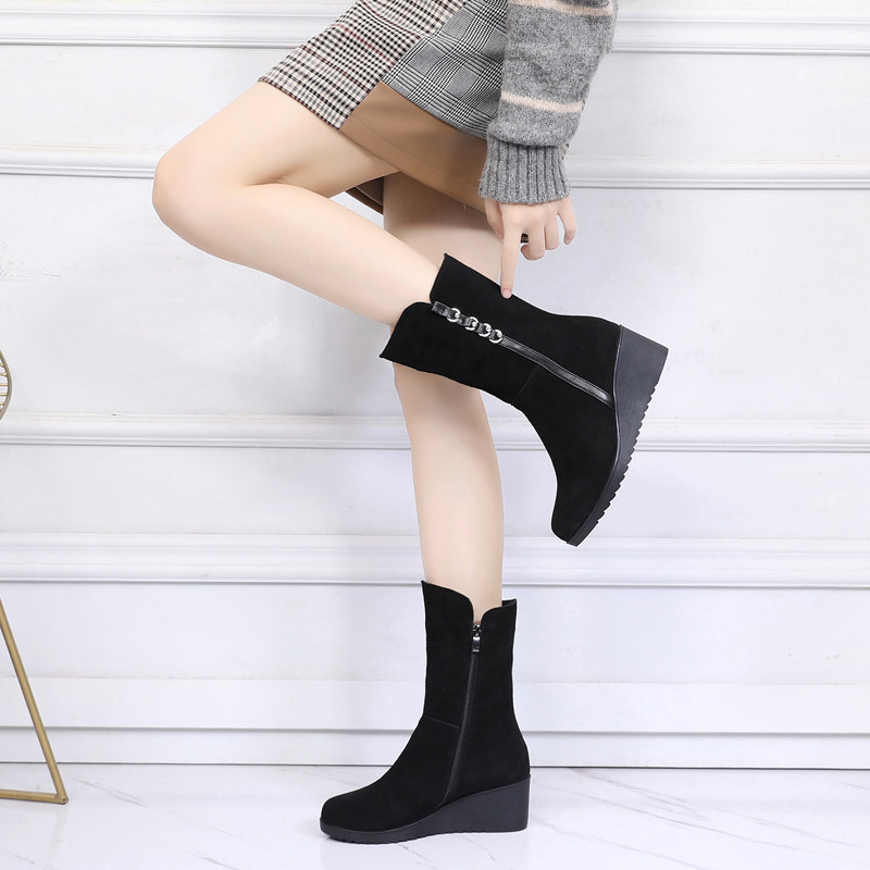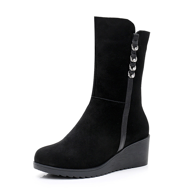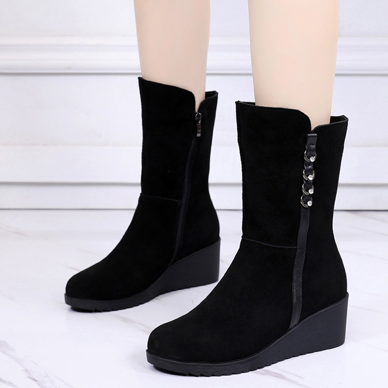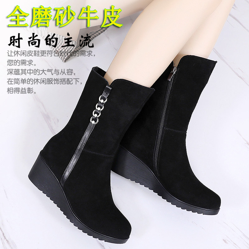 Зимние матовые ботинки, высокие сапоги, флисовая обувь, средней длины, из натуральной кожи, большой размер