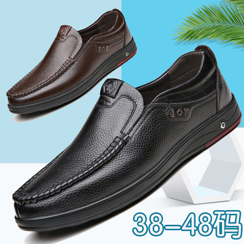 48 толстые ноги носят 47 мужские туфли из мягкой кожи большого размера с круглым носком плюс толстые 46 ленивые кожаные туфли размера 45 для людей среднего и пожилого возраста
