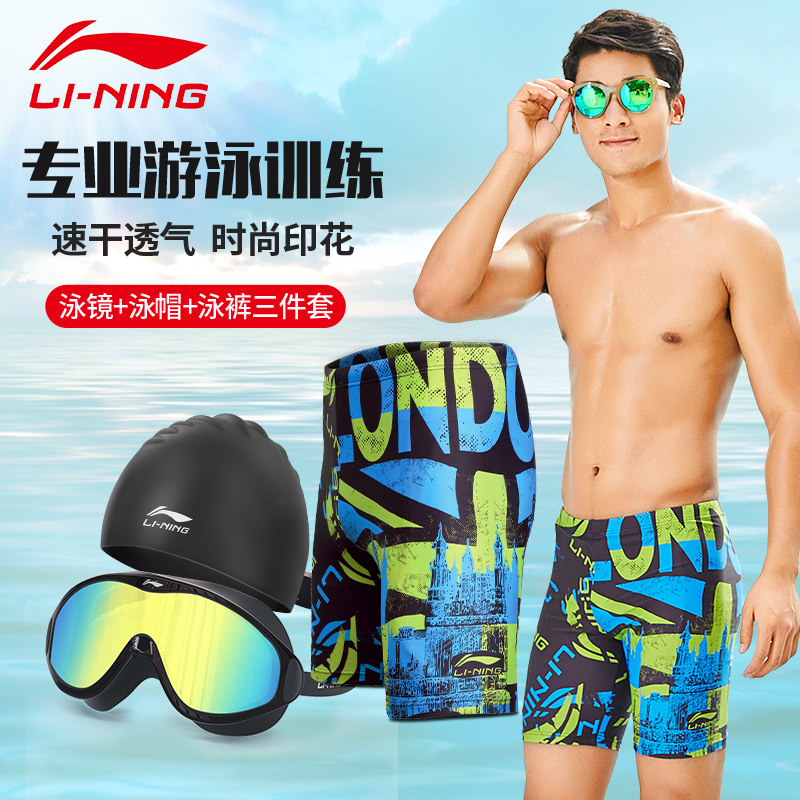 Li Ning, длинные быстросохнущие штаны, профессиональный купальник, водонепроницаемое снаряжение, плавательная шапочка, комплект