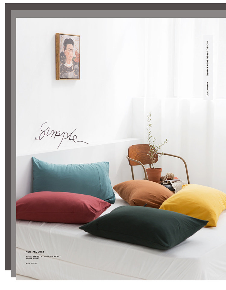 Простая вязаная хлопковая одинарная наволочка из чистого хлопка для взрослых, хлопковая наволочка в стиле ретро, однотонная, 48*74 см, одна упаковка