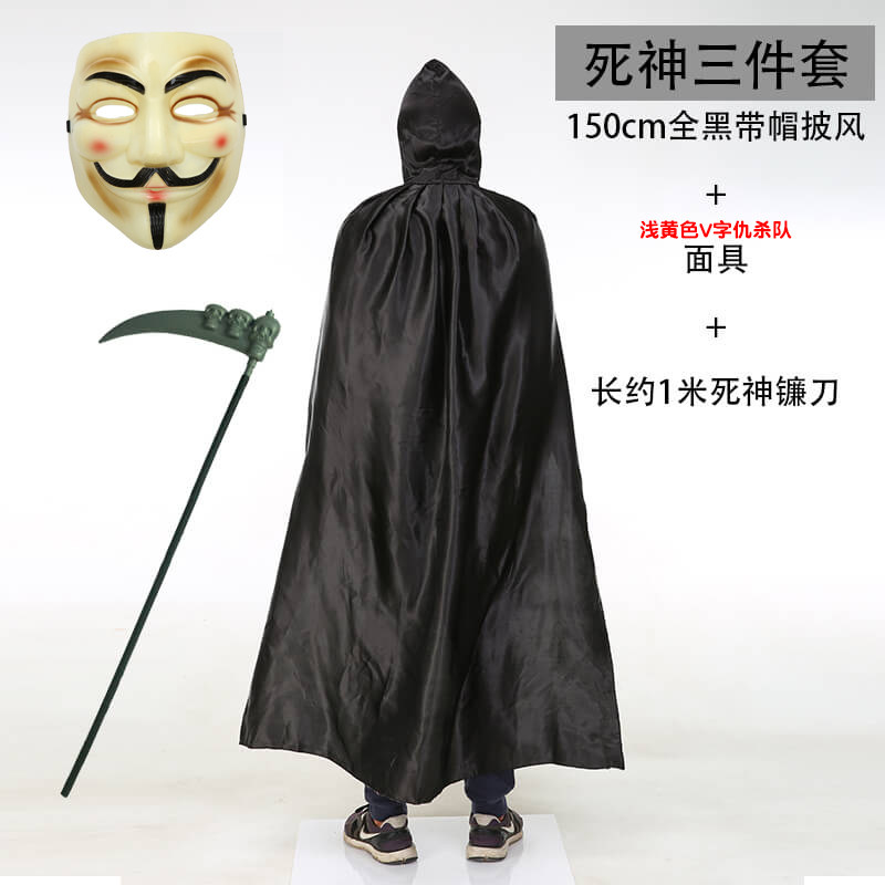 | Цвет: | Полностью черная накидка с капюшоном, рост 150 см + белая маска с буквой «V» означает Вендетта., 150 см полностью черный плащ с капюшоном + кричащая маска призрака |