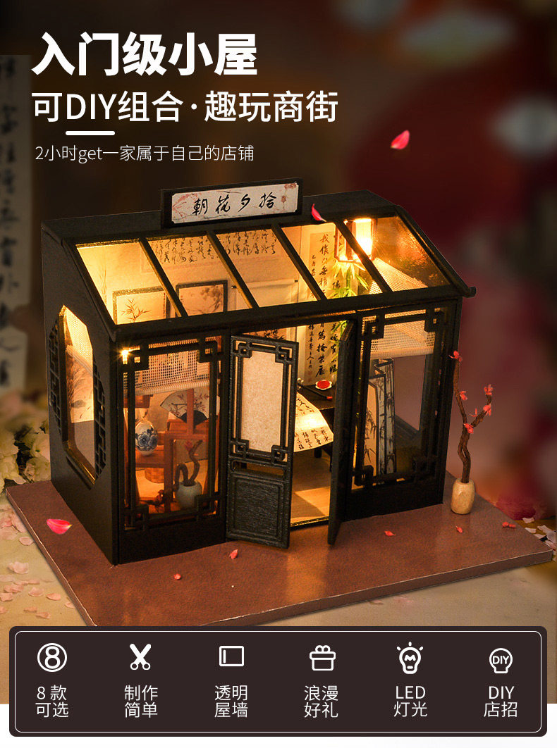 Китайская хижина, домик, конструктор, игрушка, DIY, домик своими руками, китайский стиль, избавление от скуки, подарок на день рождения