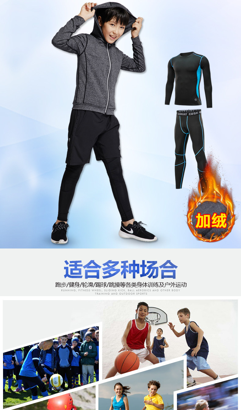 Утепленный детский баскетбольный футбольный базовый комплект для спортзала для тренировок, в обтяжку, для бега