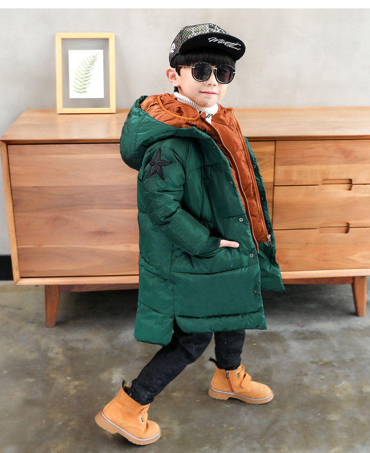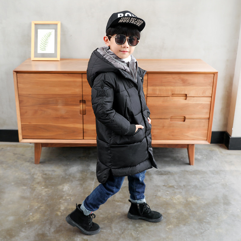 Куртка для мальчиков, детский длинный пуховик, средней длины, увеличенная толщина, подходит для подростков, в корейском стиле