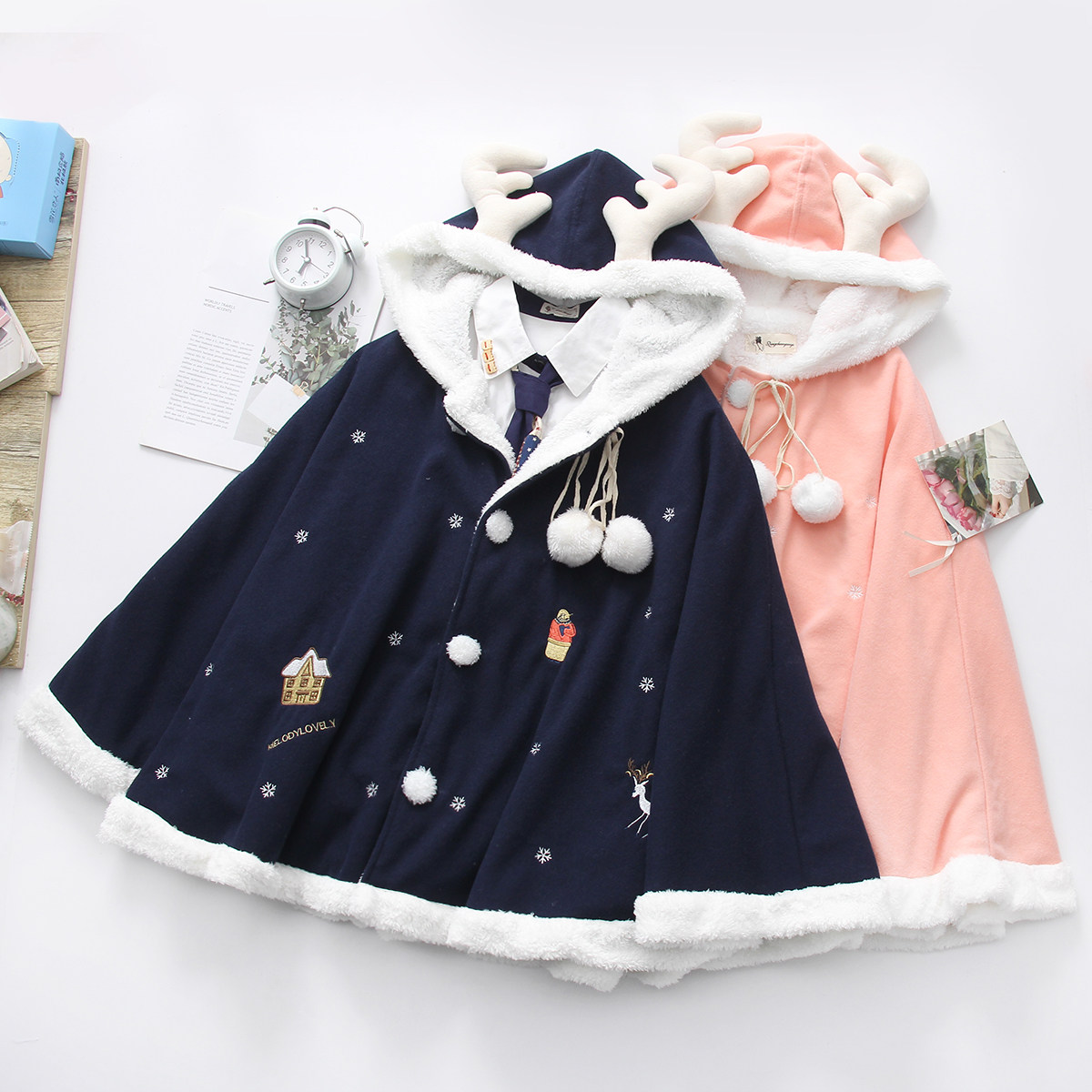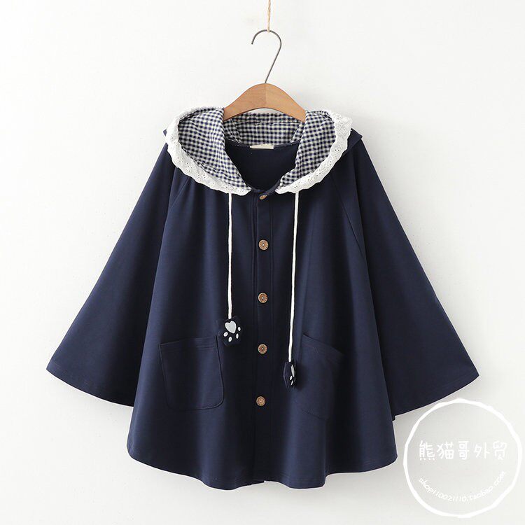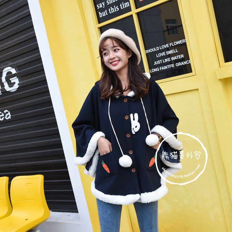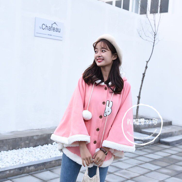 Демисезонный японский флисовый плащ, милая куртка, короткая накидка для школьников и студентов, увеличенная толщина