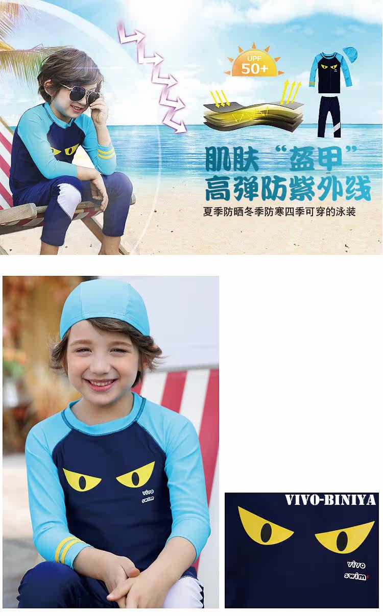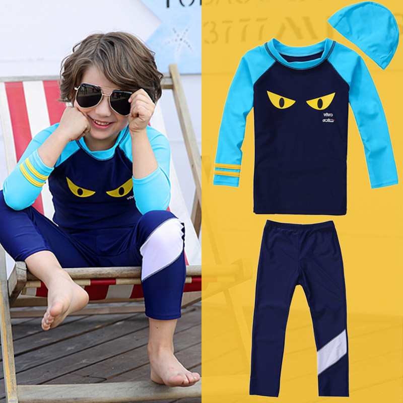 奢永 Детский купальник для мальчиков, лонгслив, раздельные штаны, зимняя форма для плавания, защита от солнца, подходит для подростков