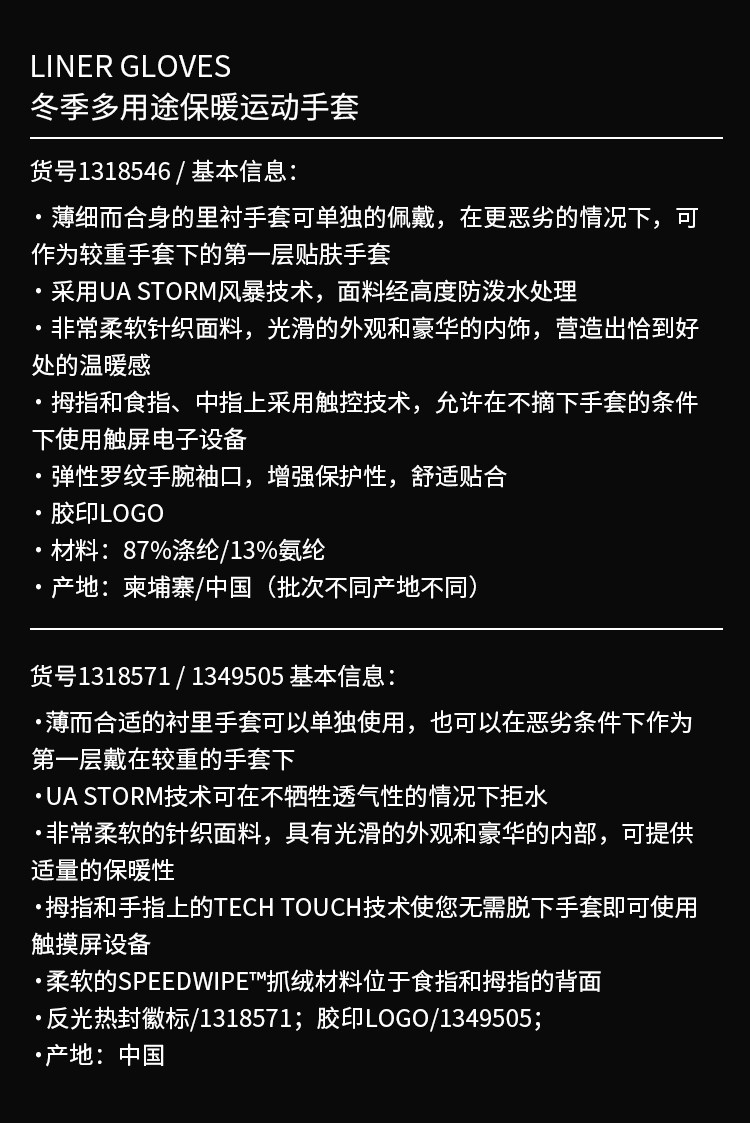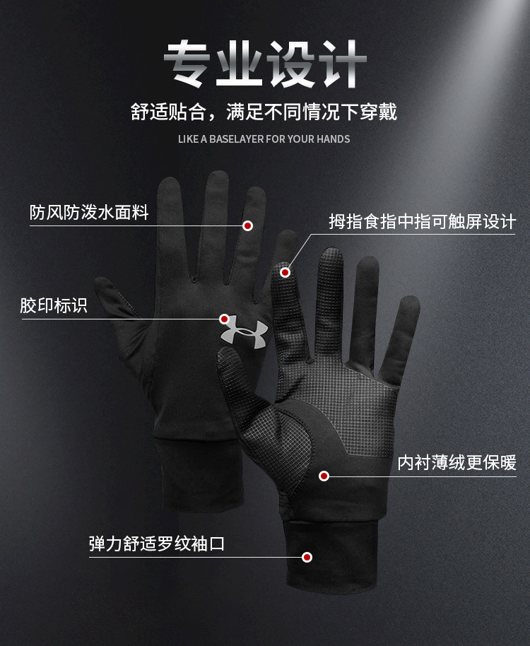 Чистые товары UA Liner 2.0 Мужские и женские спортивные беговые ветер и теплый сухой сенсорный экран Спортивные перчатки