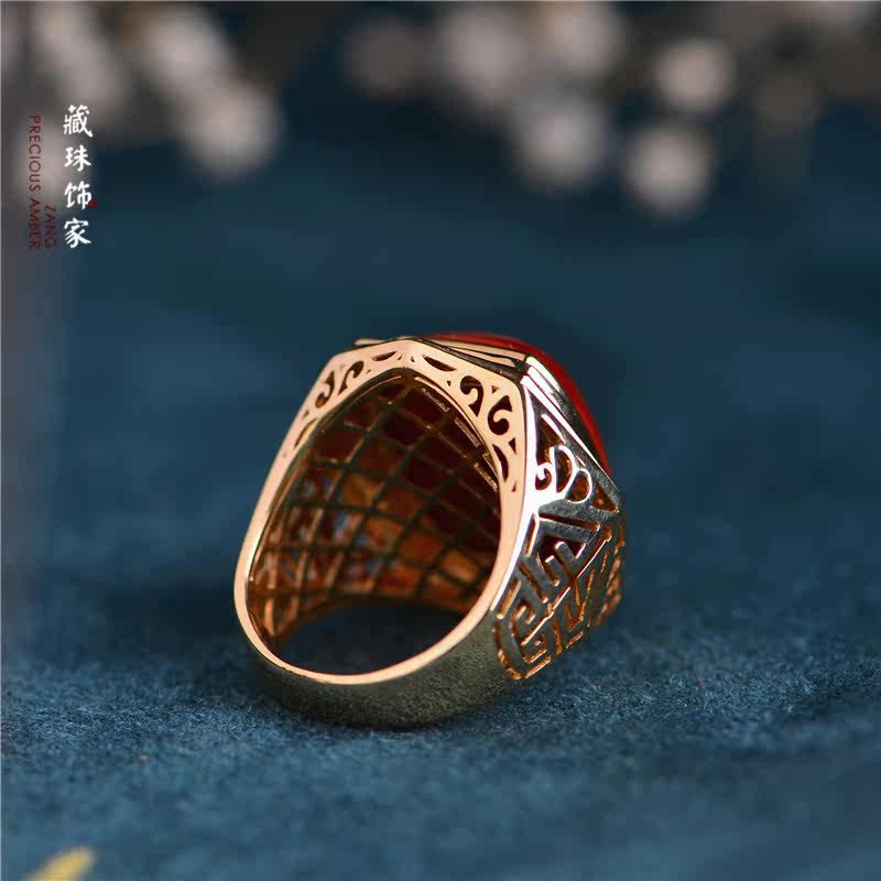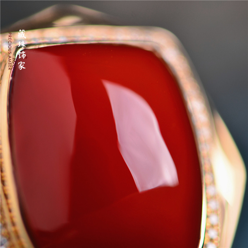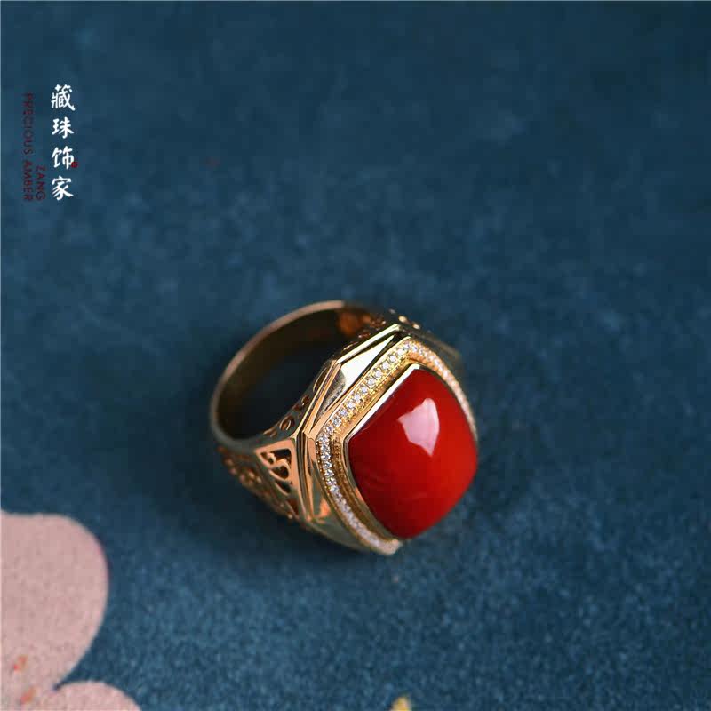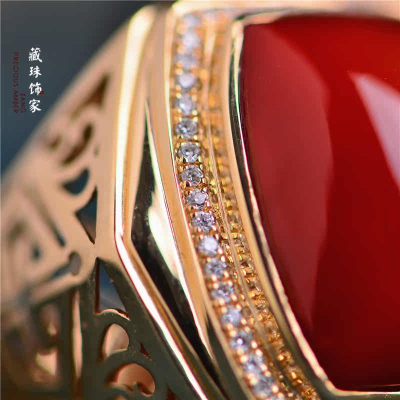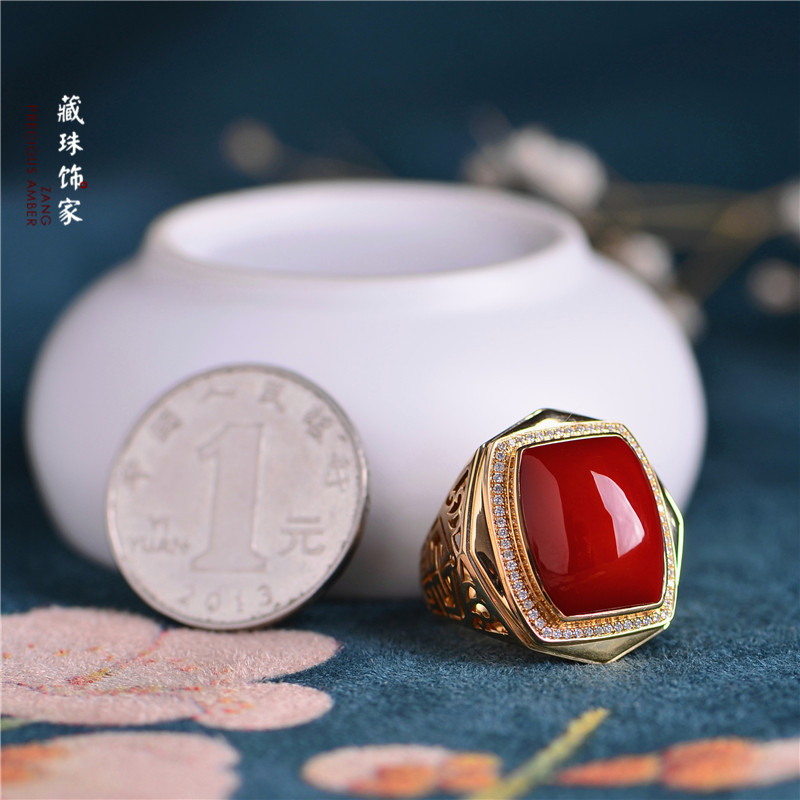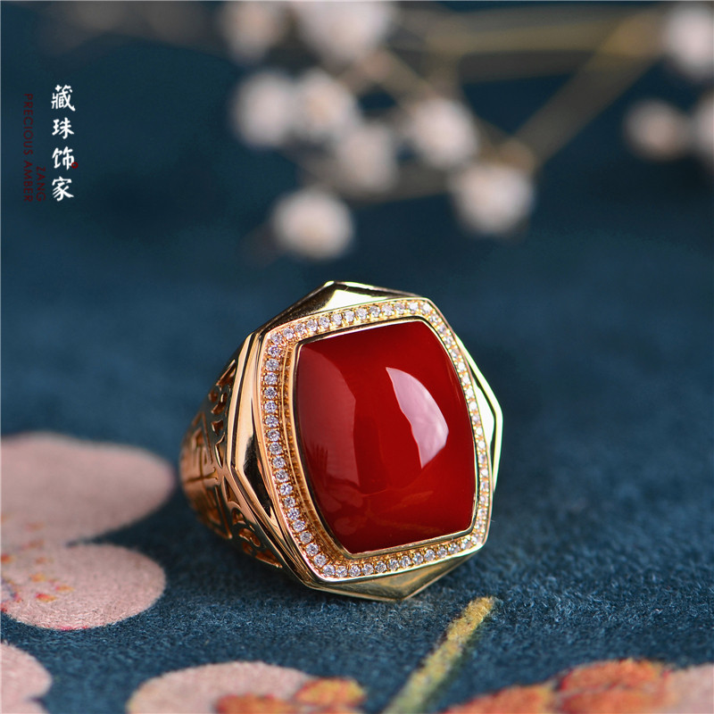 藏珠饰家 Натуральная агатовая красная инкрустация камня, квадратное обручальное кольцо, золото 750 пробы