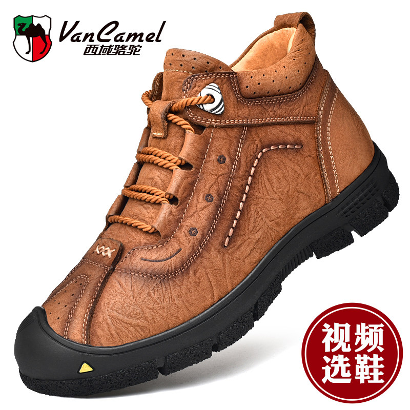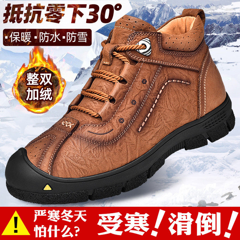 Западная верблюда Хлопковая обувь мужская кожа в зимних и бархатных мужских спортивных спортивных спортивных водонепроницаемых туфель