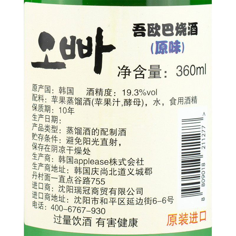 Полное 6 бутылок бесплатной доставки Южная Корея Импортировал Шохуо Оба Оригинальный Шочу 360 мл/бутылка яблока дистиллированное вино