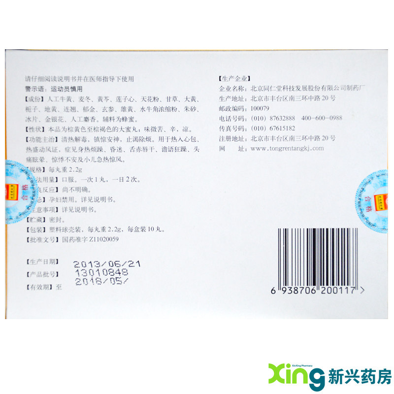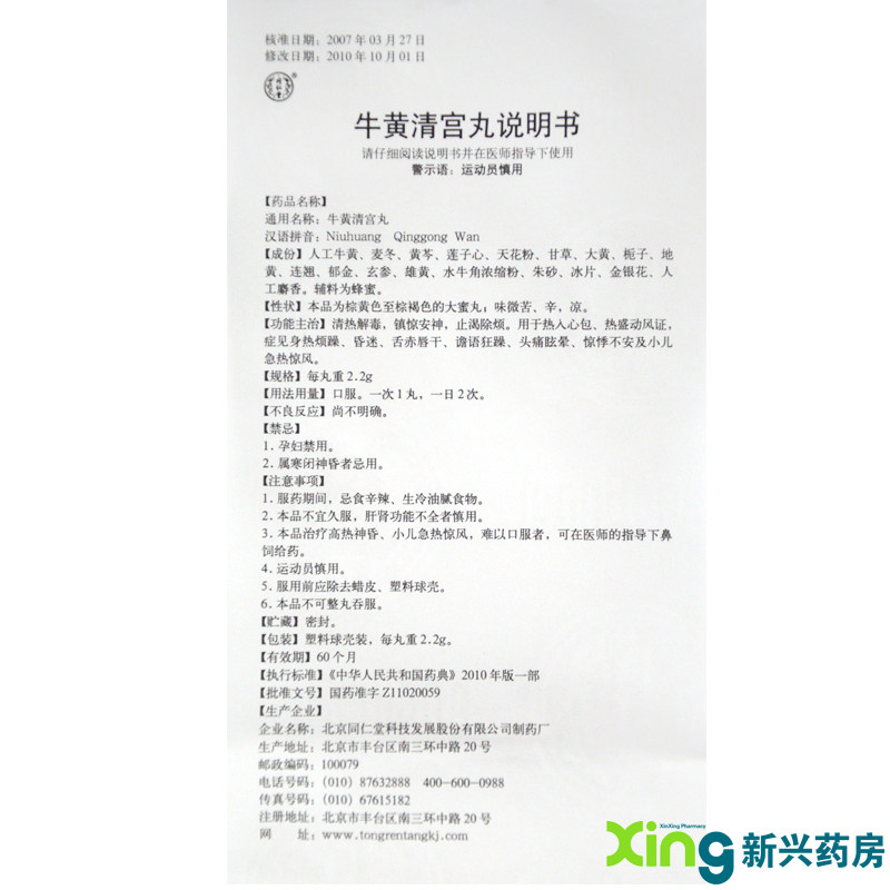 同仁堂 Niuhuang Qinggong Pill 2,2G*10 таблетки/коробка/коробка