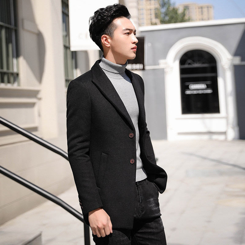 Трендовое шерстяное длинное короткое шерстяное пальто для мальчиков для отдыха, 2018, средней длины, в корейском стиле, увеличенная толщина