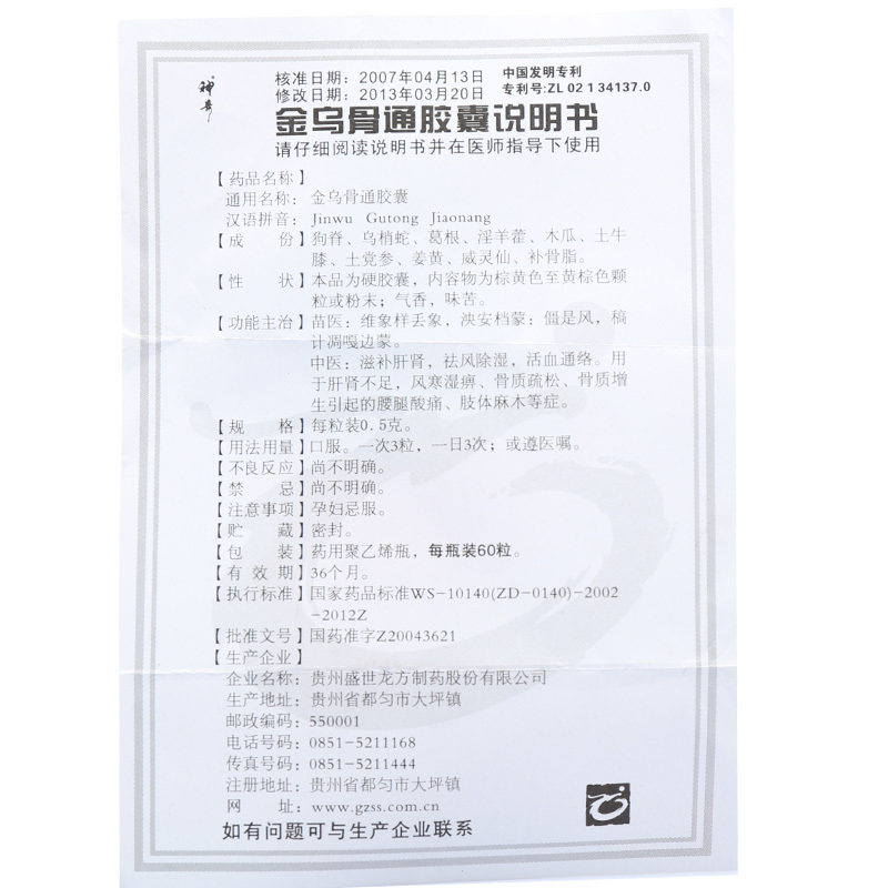 神奇 Золотые капсулы Wusong 0,5 г*60 зерна*1 бутылка/коробка подлинный большой флагманский магазин.