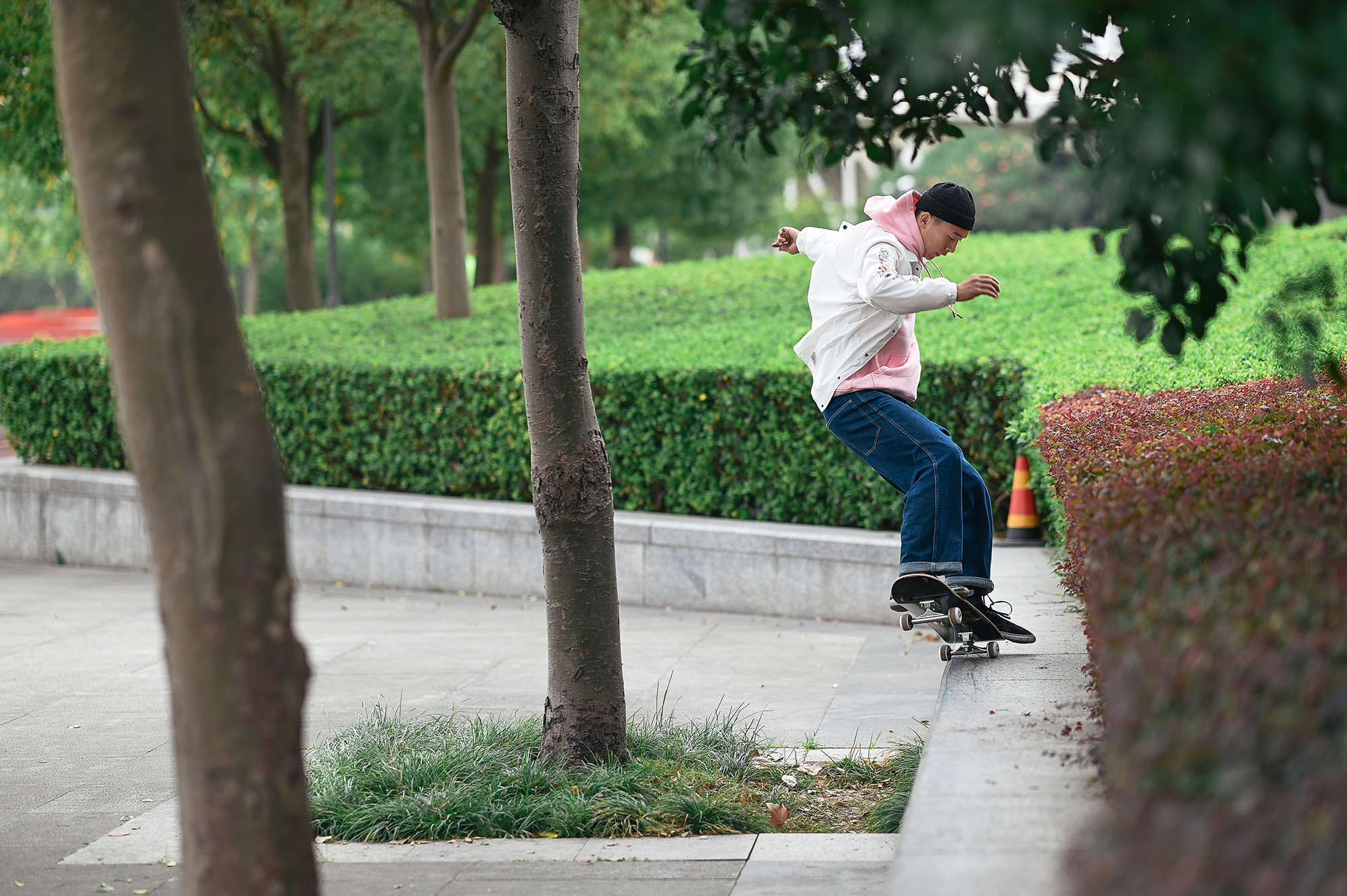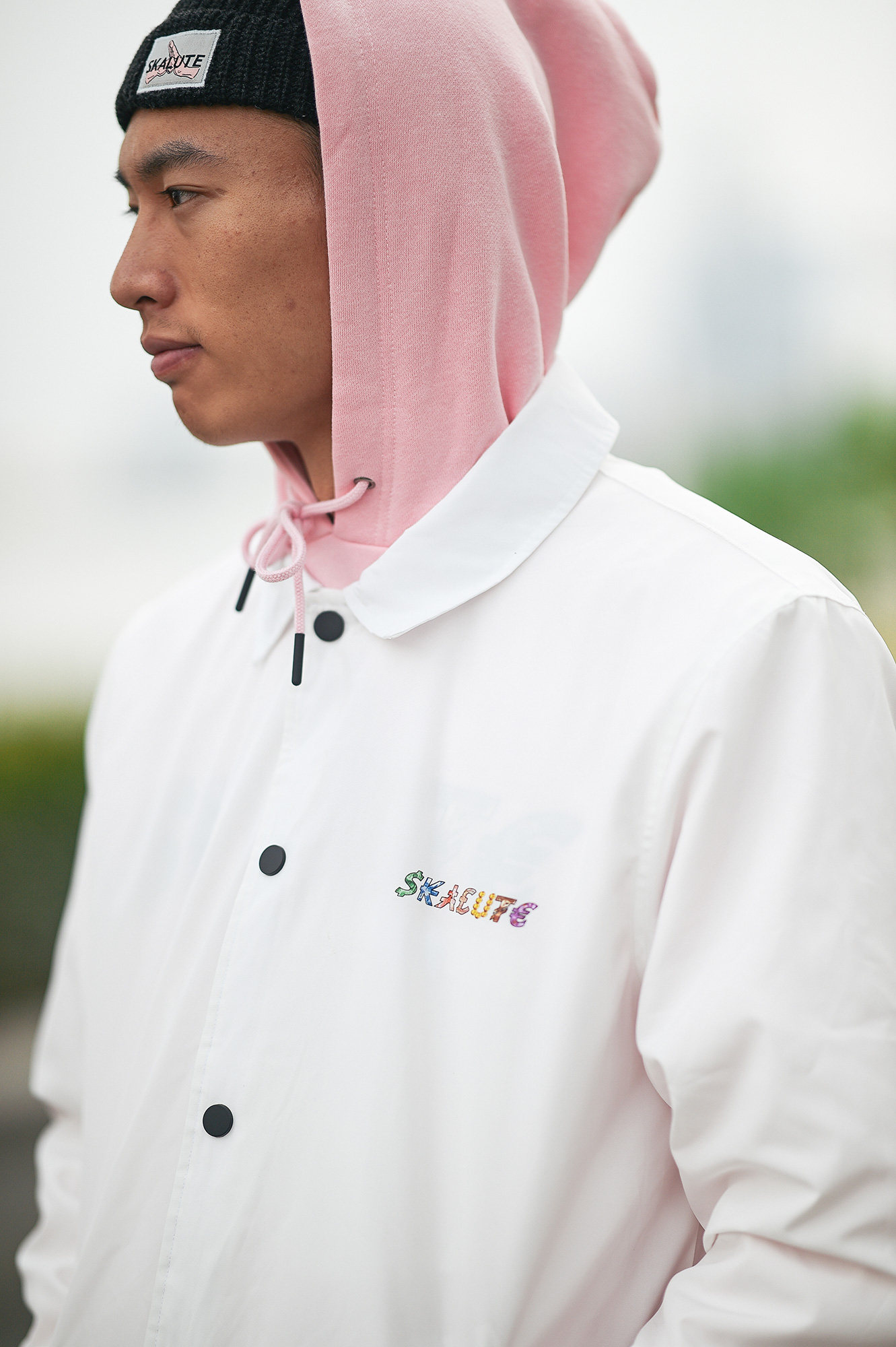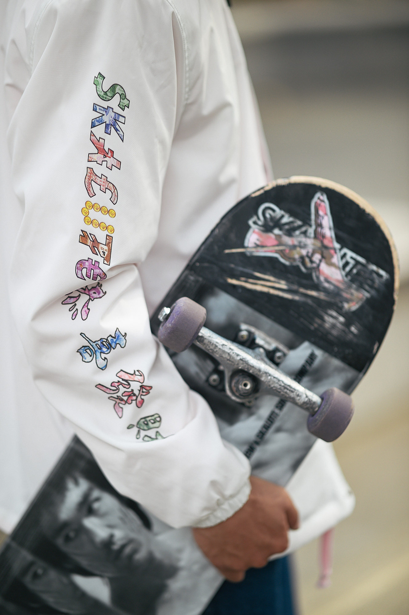 Скейтборд, трендовая белая черная куртка, кардиган