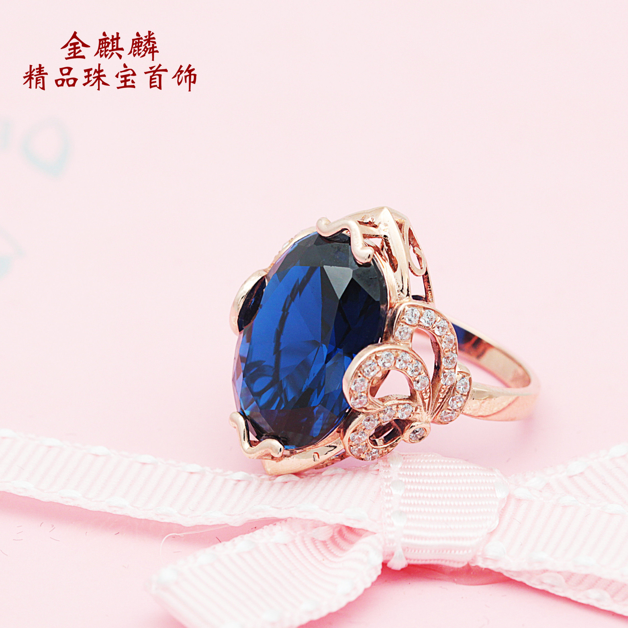 Золотое сапфировое кольцо, Россия, розовое золото, золото 14 карат