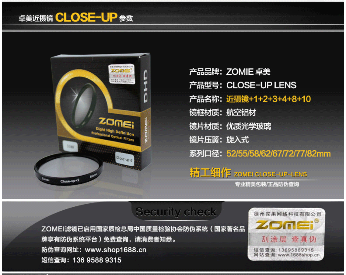 Размер объектива: 52mm, 55mm, 58mm, 62mm, 67mm, 72mm, 77mm, 82mm