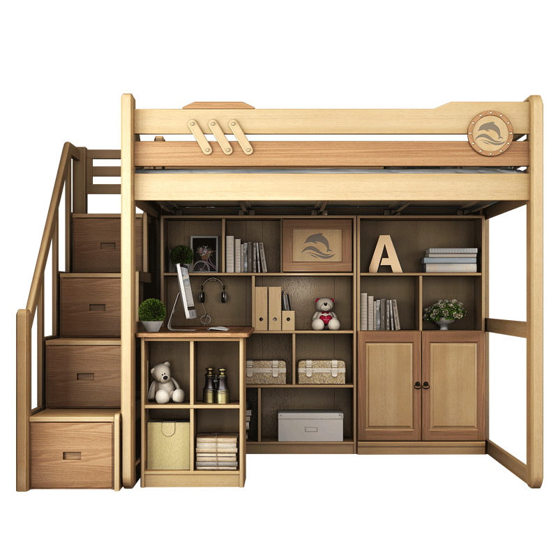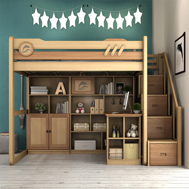 Полная древесина, чтобы ложиться спать, двойная кровать, детская кровать, высокая и низкая кровать, кровать для взрослых, столик, многофункциональная комбинированная кровать, повышенная кровать