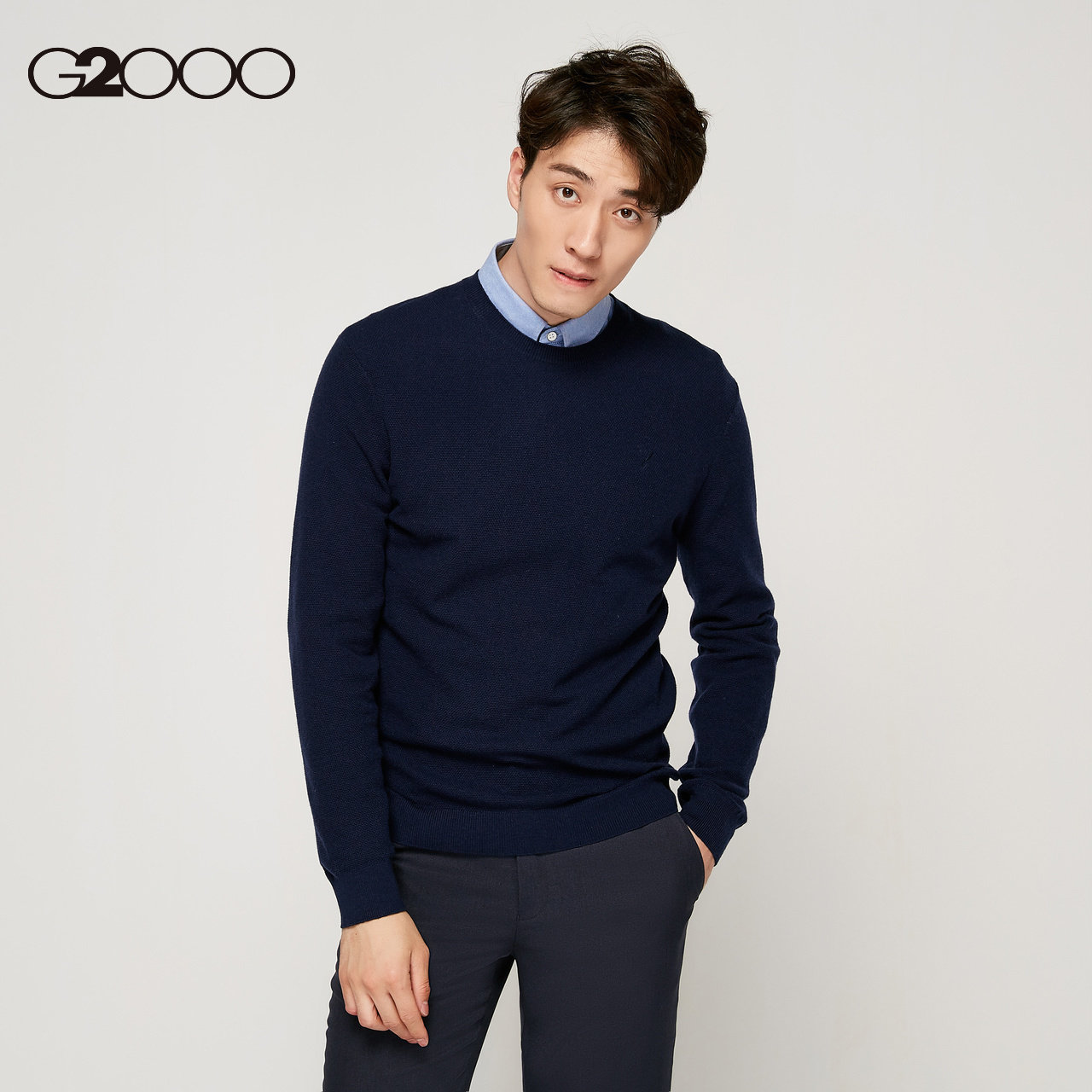 G2000 Классический однотонный трикотажный свитер с круглым воротником