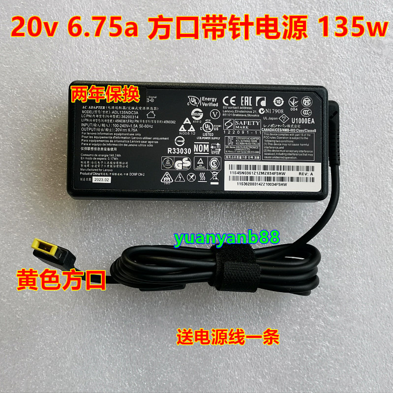 Подходит для Lenovo Savior 15ISK R720 Y50 Y7000 адаптер питания с квадратным портом, зарядный кабель 135 Вт