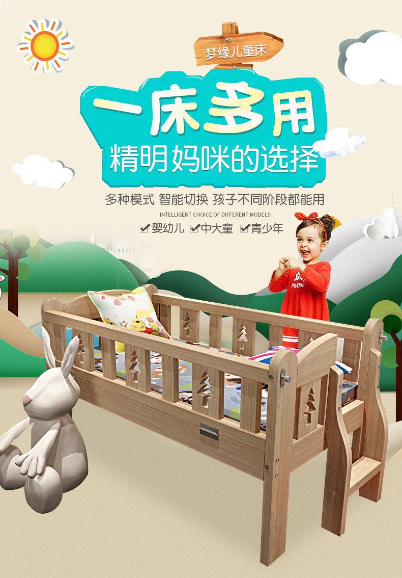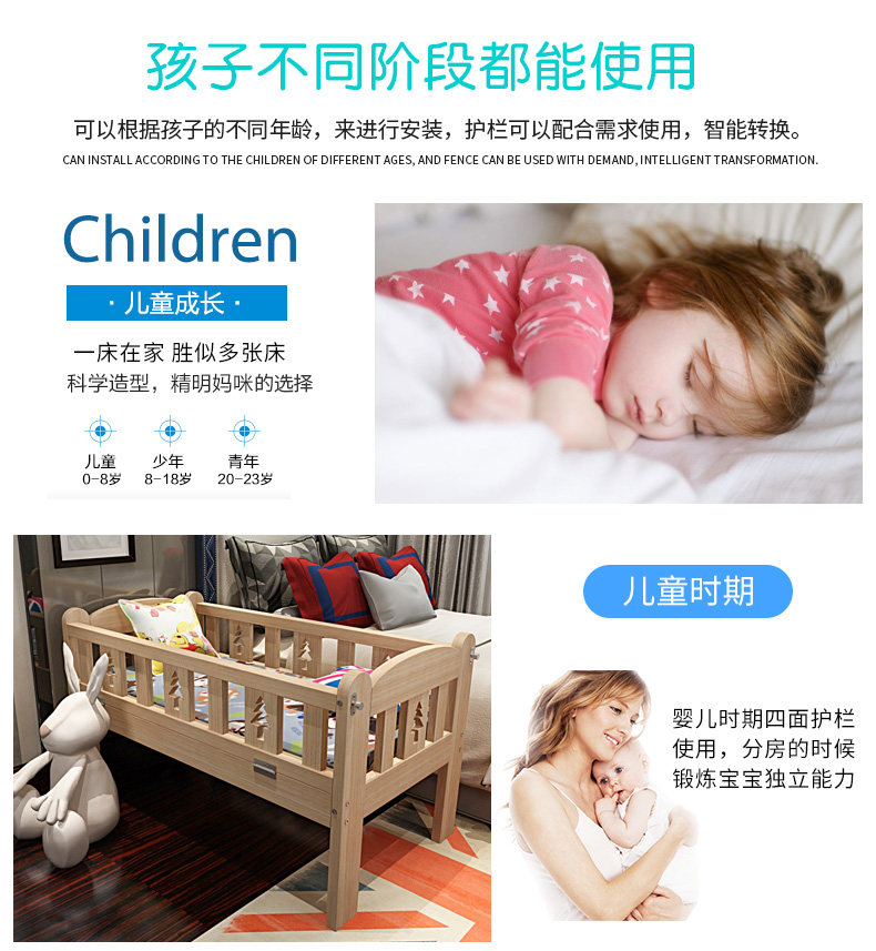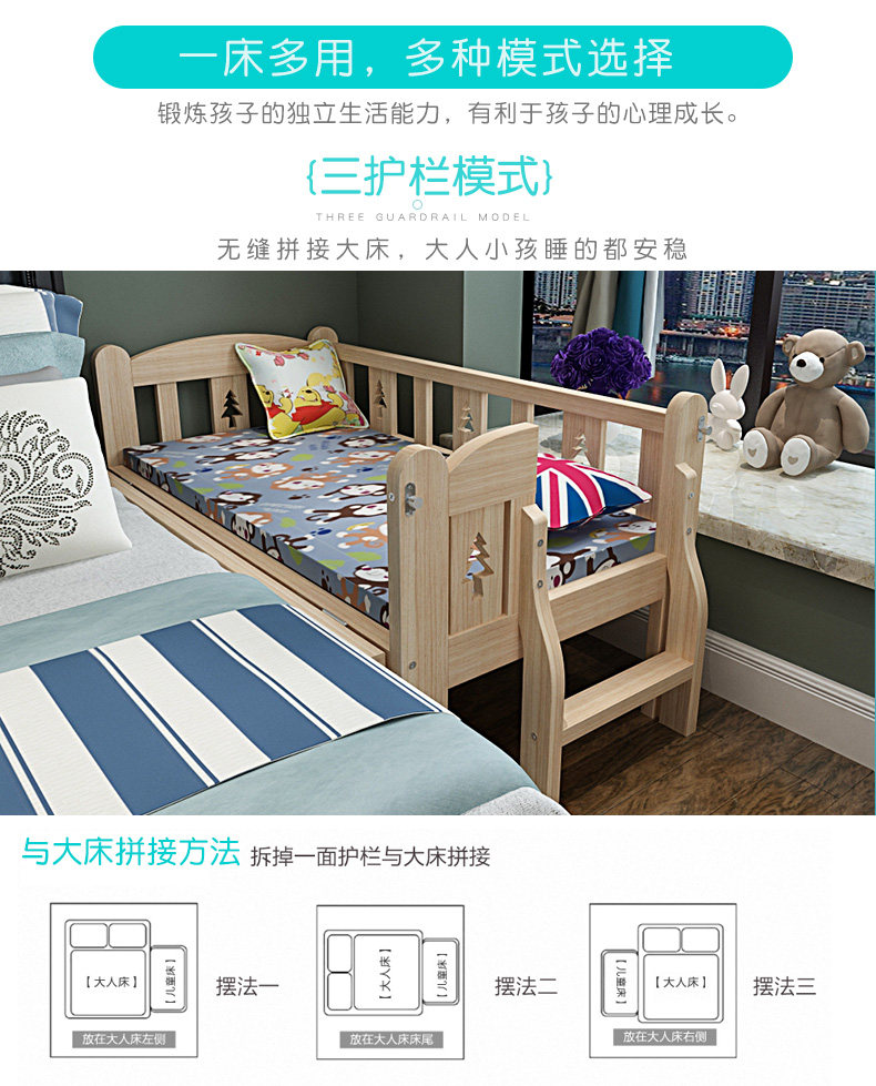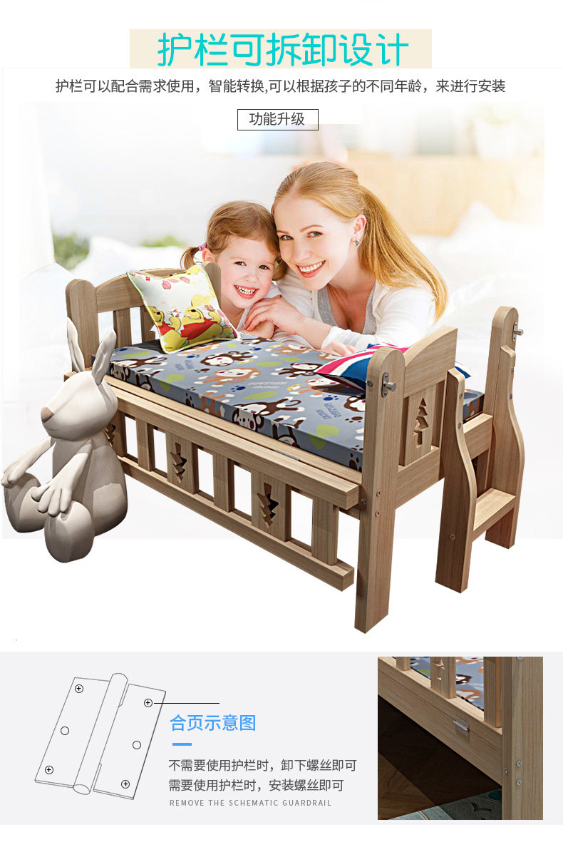 Кроватка из натурального дерева для приставной кровати, детское ограждение для мальчиков и девочек